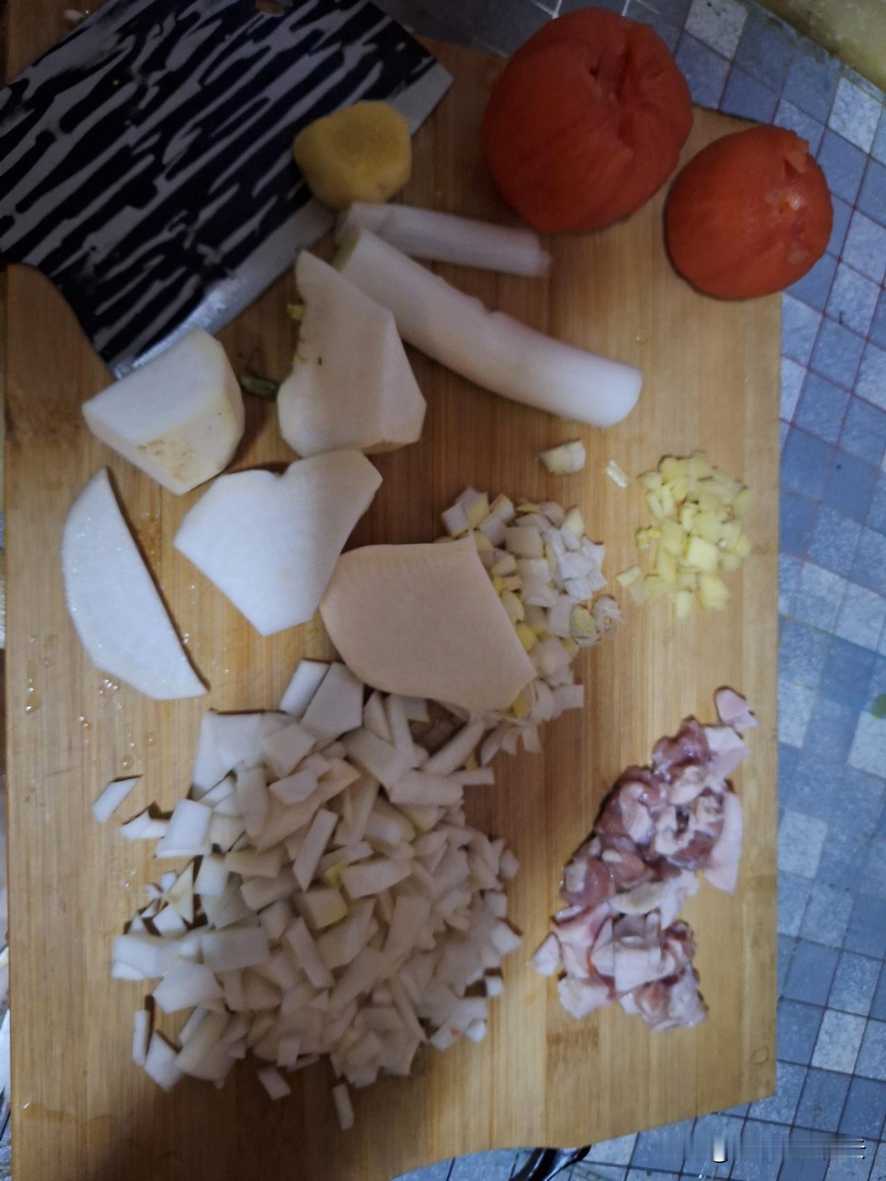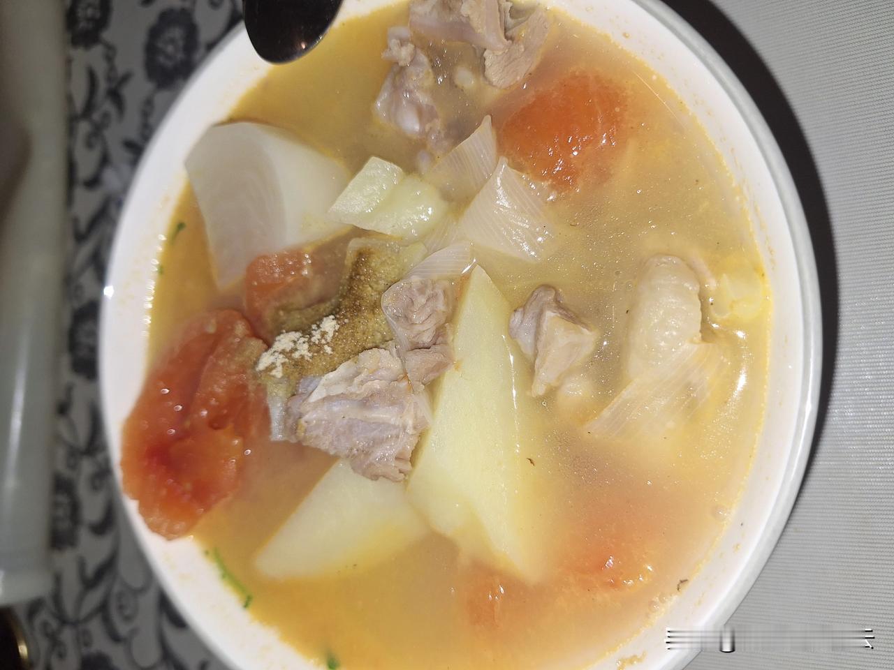 今天是腊月初一,四九第三天,真得太冷了,这是老夫纵横江湖数十年所经历最寒冷的冬天。在冰面上必须学会外八字走路,否则就会摔得仰面朝天趴在地上。晚上做羊肉,御寒。羊肉抓饭和炖羊肉。现在解锁新疆抓饭很到位了。羊肉切丁炒熟,平铺在电饭煲底部,再放淘好的米,再把蔬菜切丁煸炒,盖在米上面,电饭煲开蒸。这次我用的蔬菜是“恰玛古”,图5,我此前没见过,不知道汉语对应啥。炖羊肉放了土豆、番茄,还有恰玛古。荤素搭配,营养全面,味道好极了。