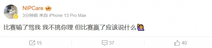 直播吧1月19日讯LPL第一赛段NIP击败EDG,赛后Care更博:比赛输了骂我我不挑你理但比赛赢了应该说什么
