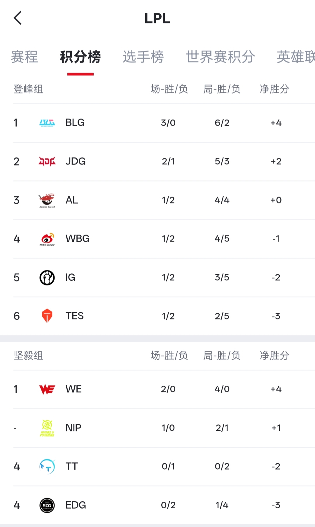 (各位JRs亦可参照文末指引,前往虎扑英雄联盟赛事页查看实时更新的完整LPL战队排名)