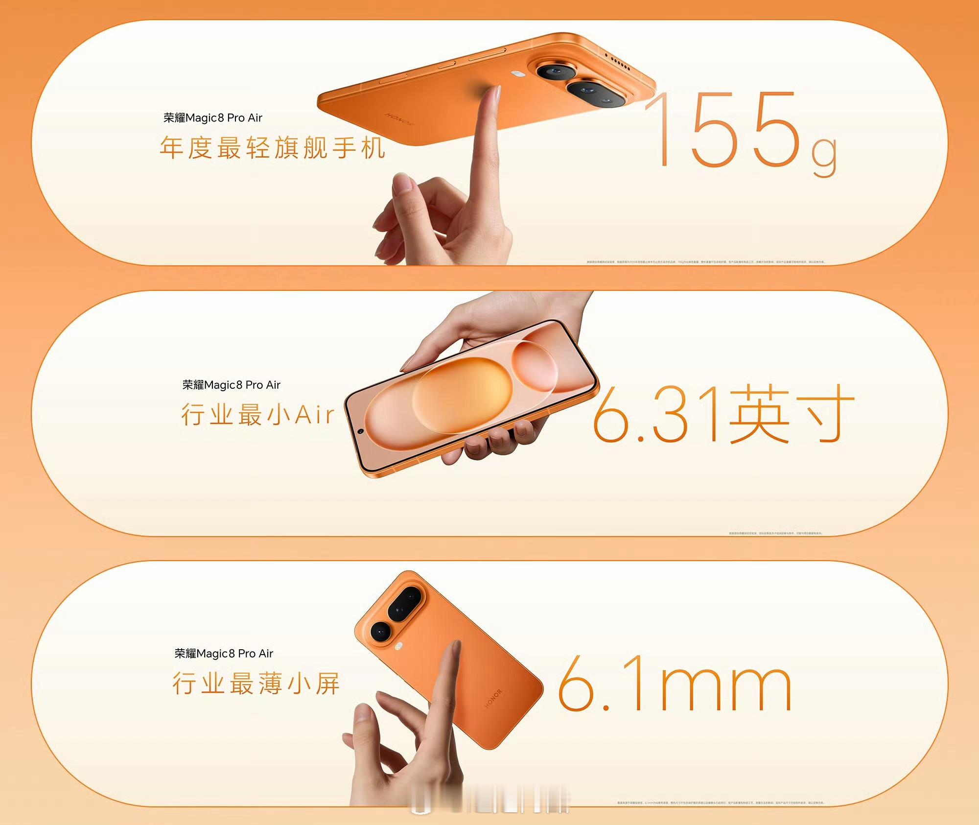 Magic8 Pro Air 国补后 4499 起…买 Air 的冲动又来啦!综合来看我觉得这次很聪明就是它基本上把 iPhone Air 所有的缺点都给补齐了,它整体虽然在厚度上稍微增加一点,但是我会觉得为了这一点的体验均衡是值得的155克薄至6.1mm!而且它也完完全全解决了很多人担心 eSIM 卡写入或者写出的一些不太方便,它直接支持了实体卡槽和 eSIM 非常无敌啊