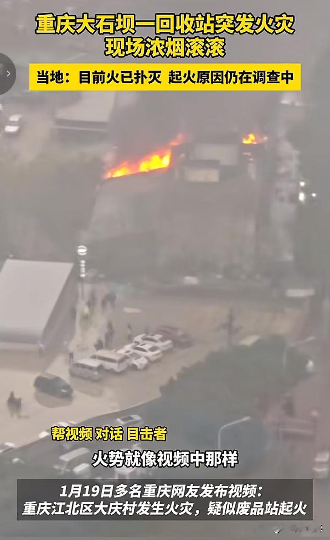 1月19日下午四点过,在大石坝大庆村附近的居民被突然冒起的滚滚浓烟震惊!远远望去,浓黑的烟雾很快笼罩了附近的天空,大街上传来了人们一阵阵的惊呼:起火了!起火了!!原来是大庆村的一家废品收购的后院起火了。火势蔓延得很快,从最初的浓烟到冒起几丈高的火苗,只隔了几分钟的时间,根本来不及救援。所幸附近不是居民区,受到波及的只是临近几个门面。现在想想:好像很多小区的偏僻处,都有废品收购站的存在。那里堆满了泡沫、纸板、塑料、胶皮等各种易燃物品,而老板经常用切割机在那里拆解各种废旧家电,回收金属。那切割金属冒出的火星子到处飞!以前看见了习以为常,因为他们都是这样操作的,也经常看见,所以并没有觉得危险。但是在今天这个阴雨绵绵的天气里,大石坝的这个废品收购站里却发生这样的大火,真的让人禁不住担心!这些收购站的老板,真的没有多少防火意识的,而且所处的位置也大多在居民区。不出事则已,一旦出事,真的是救援不及,连后悔的机会都没有!这个事真的是应该注意一下,不是要为难谁,而是隐患太大了!