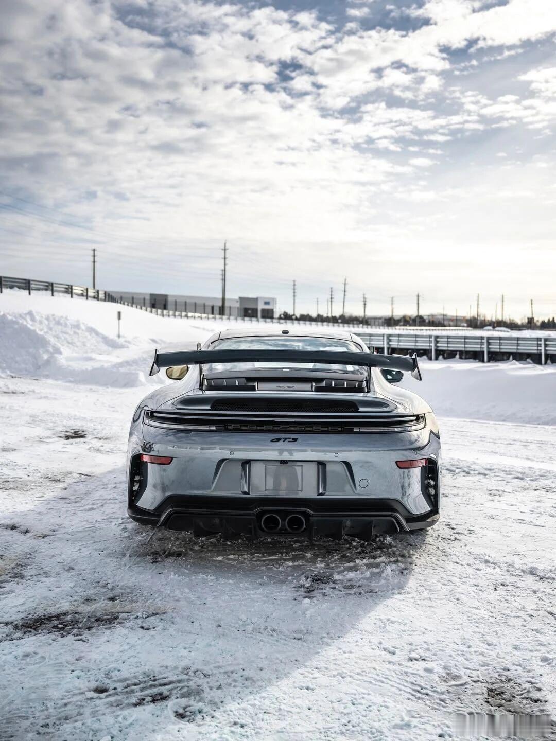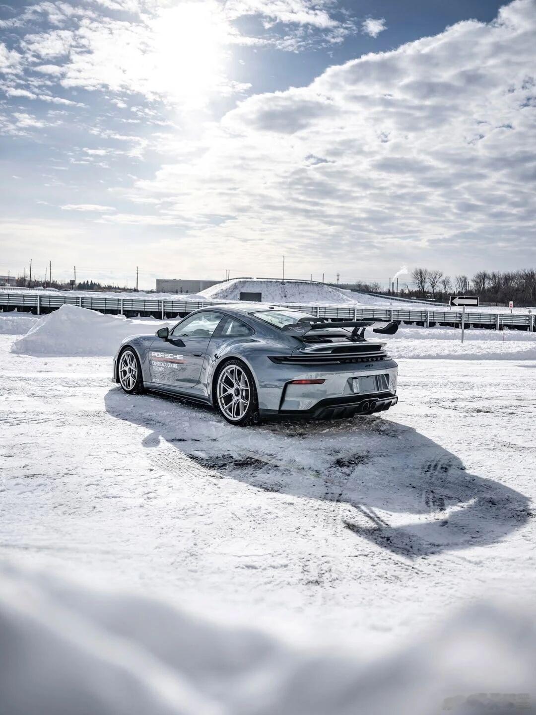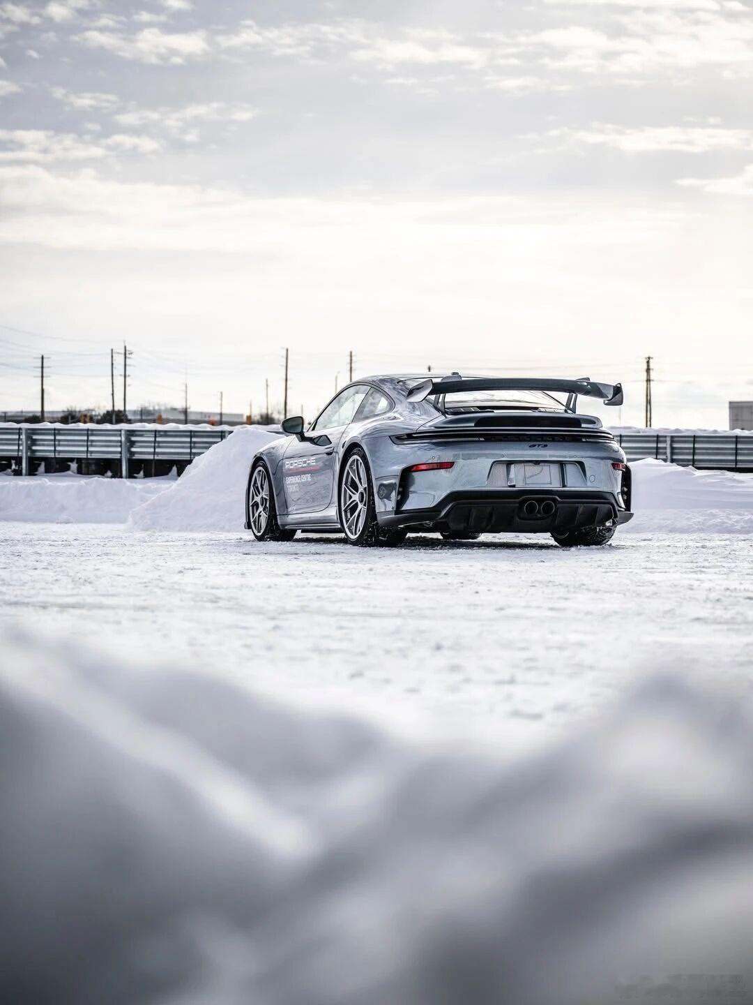 下雪雪中保时捷911 GT3是真的帅啊