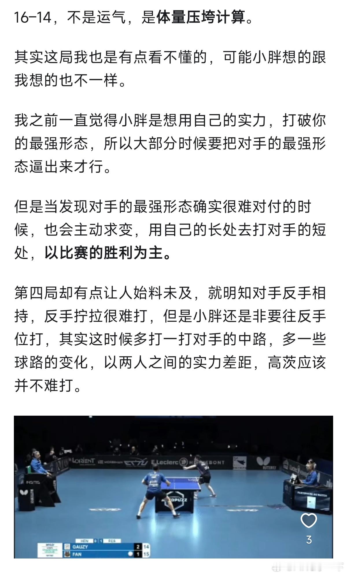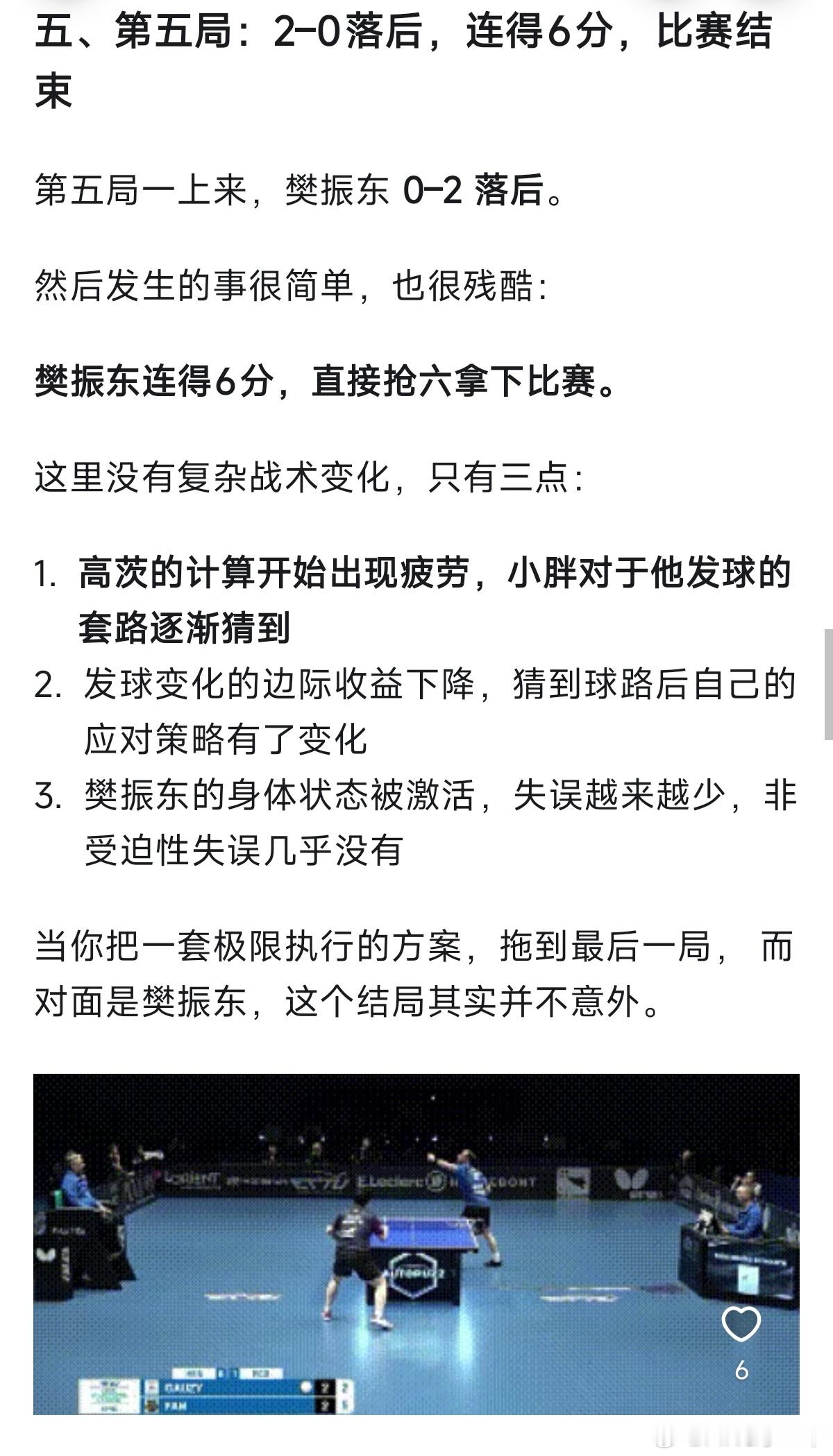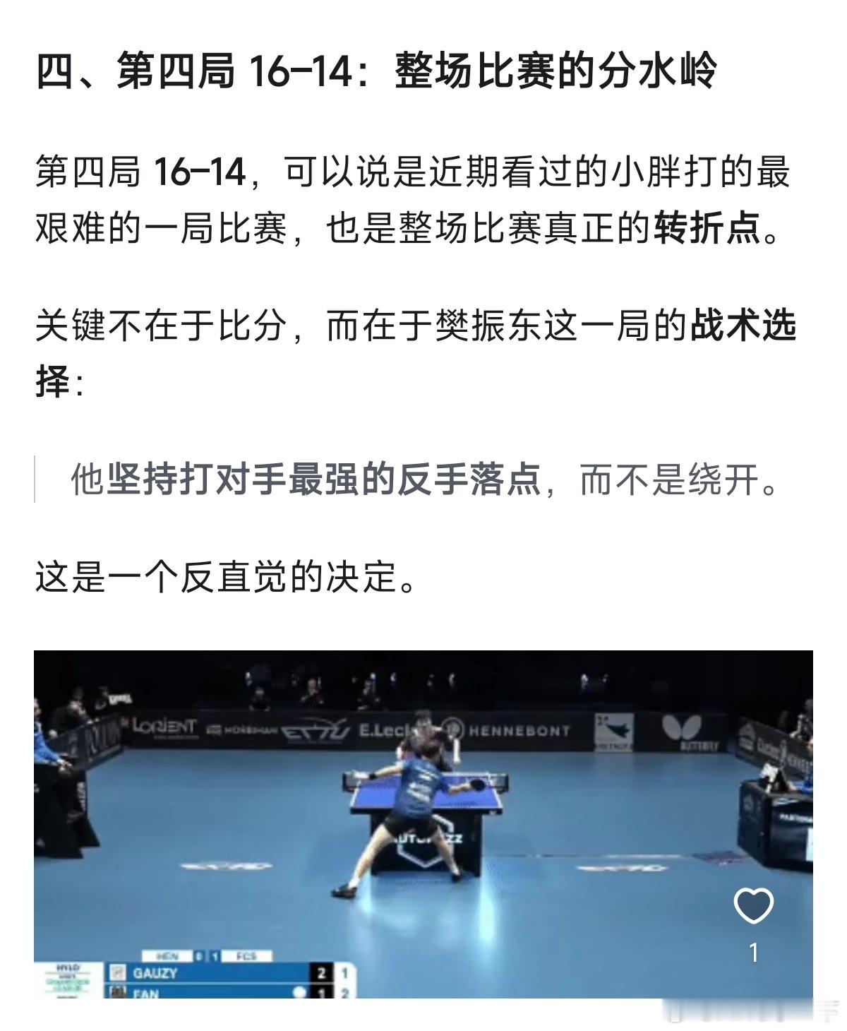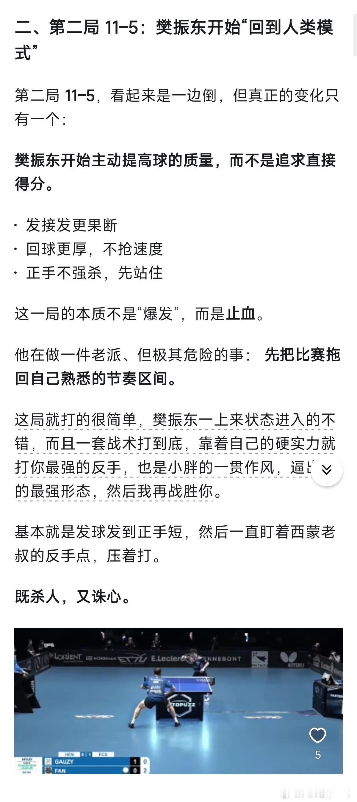 这场球,该是樊振东欧洲之旅至今最胶着的一战。管它局势波谲云诡,皆敌不过一颗名为“樊振东”的大心脏