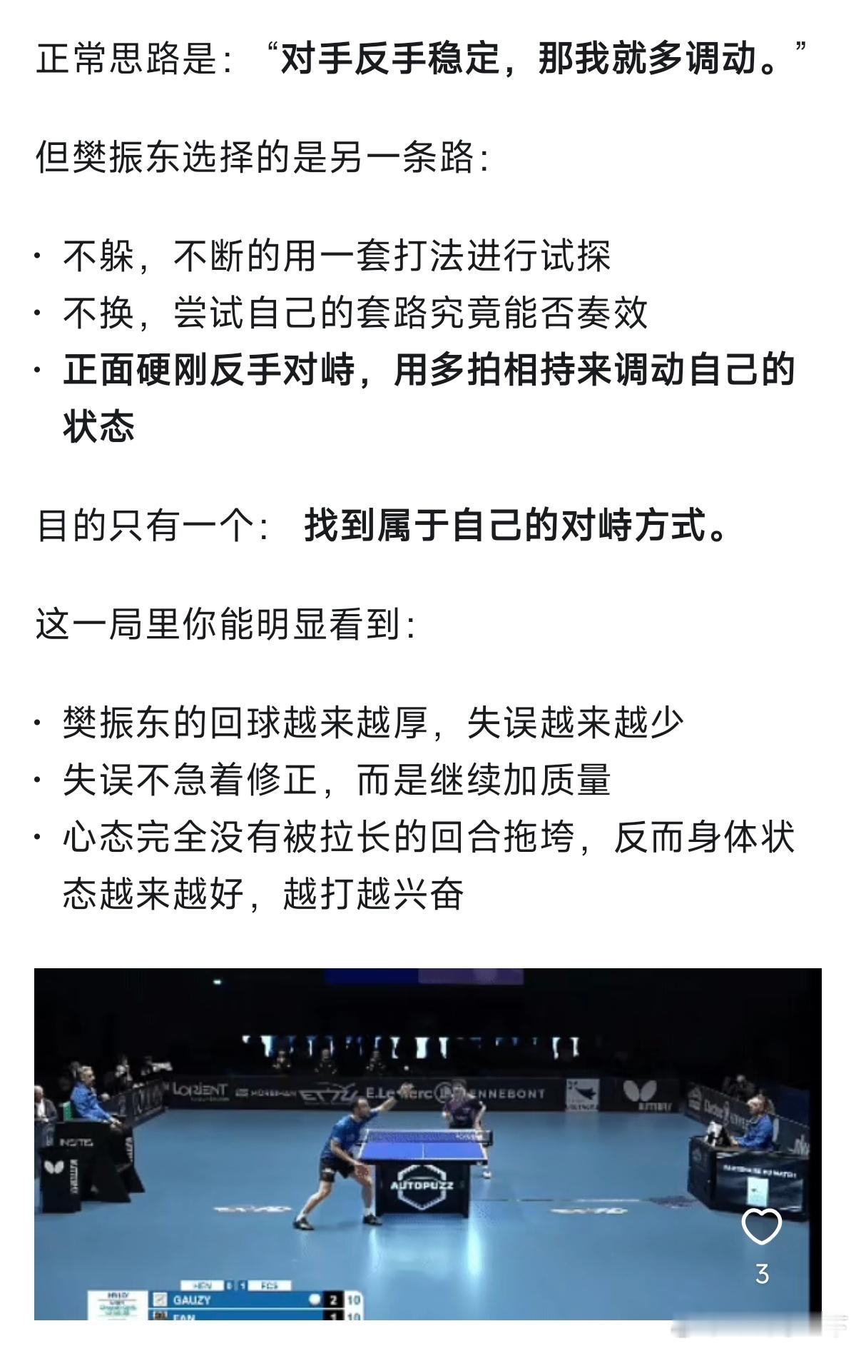 这场球,该是樊振东欧洲之旅至今最胶着的一战。管它局势波谲云诡,皆敌不过一颗名为“