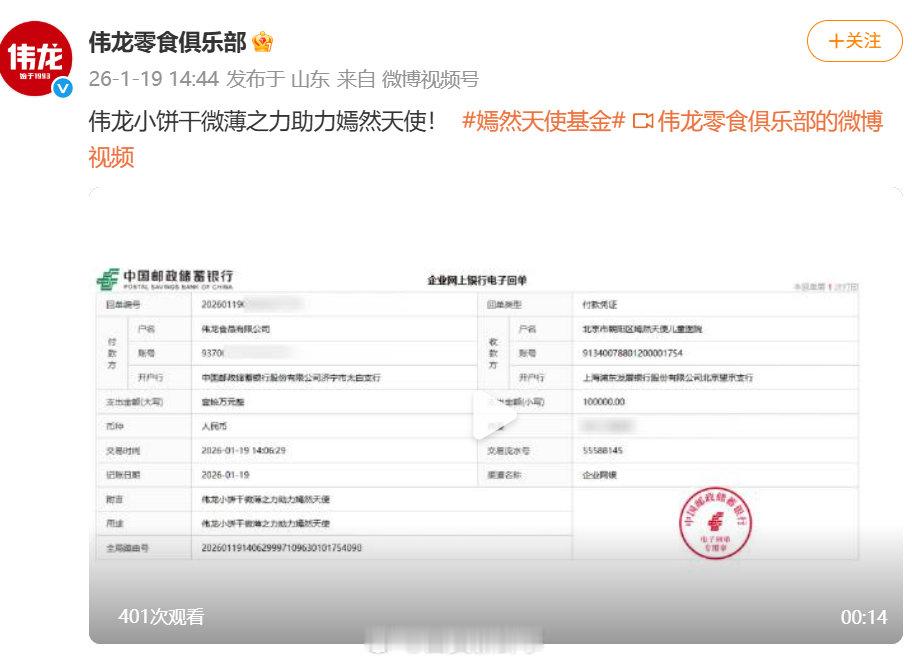 多家企业向嫣然医院捐款豪士面包向嫣然医院捐30万近日,北京嫣然天使儿童医院房租债务问题引发广大网友关注。1月19日晚,多个国货品牌向嫣然天使儿童医院捐款:捐款50万元并发文:一份心意,一份守护卫龙向嫣然天使儿童医院捐赠50万元,愿每个孩子都能绽放灿烂笑容~ ;捐款30万元并发文:以微薄之力,与大爱同行❤️ ;捐款10万元并发文:伟龙小饼干微薄之力助力嫣然天使!陈光标喊话李亚鹏提供银行卡号