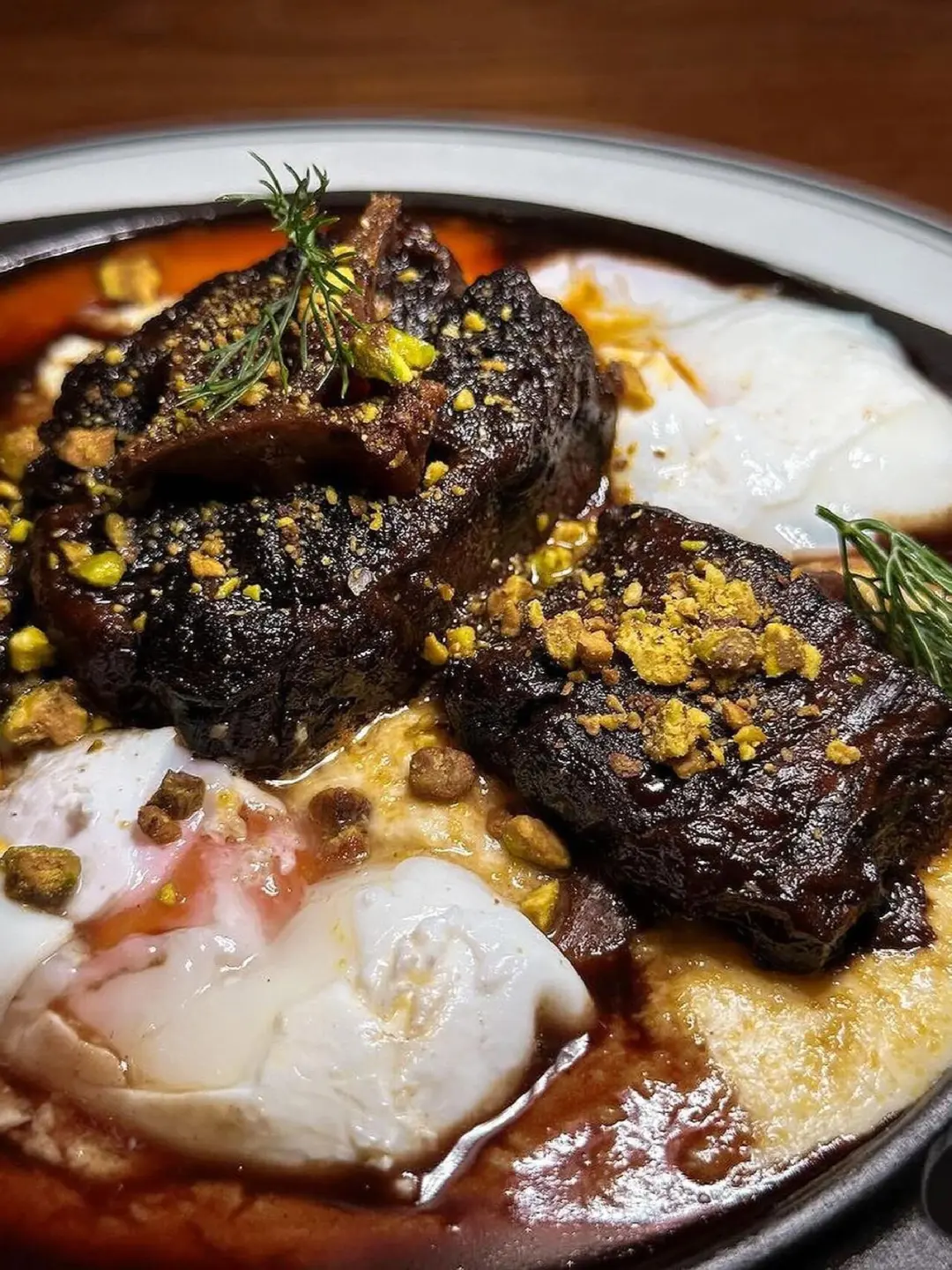 -天鹅绒鸡蛋和培根:多少人都是为了这一口而来,酥软的面包上铺着柔软的鸡蛋,最后是焦香的大块培根,这一口下去超满足超幸福