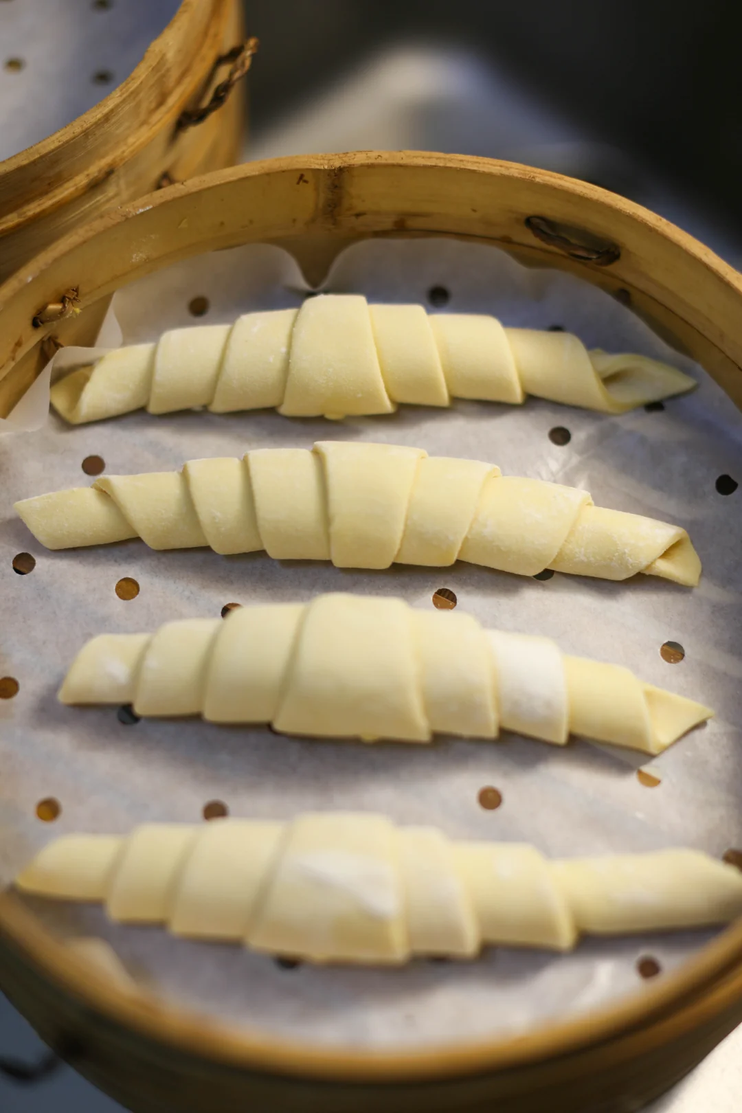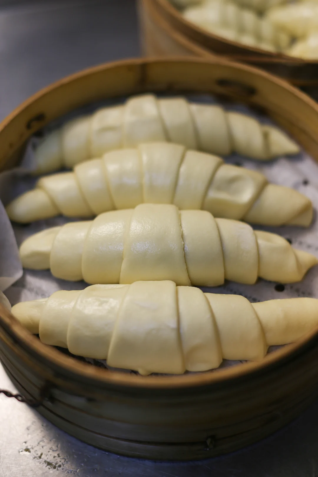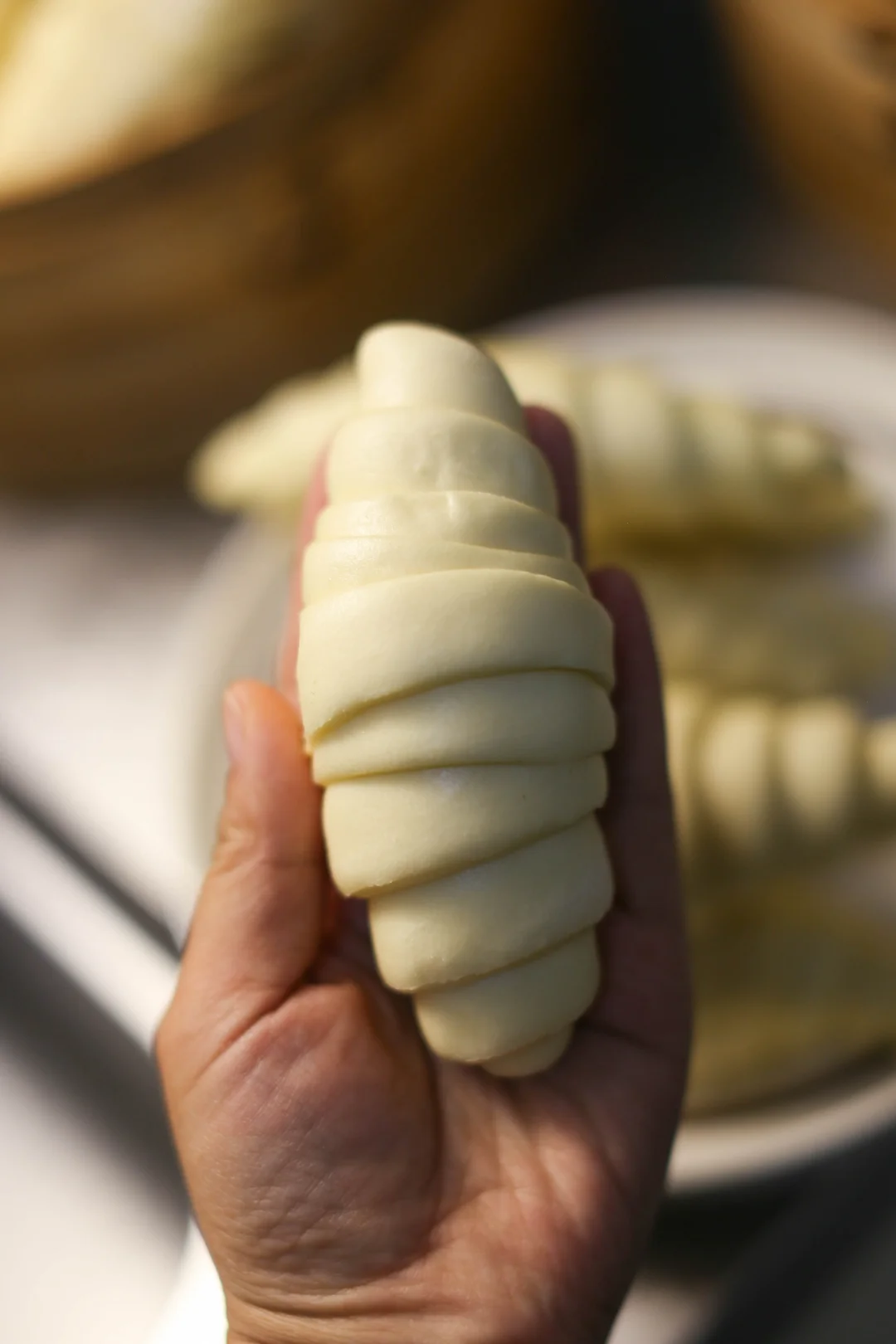 掀开锅盖的刹那,乳白的蒸汽携着纯粹的麦香与奶香,扑面而来。牛角馒头们泛着柔和的象牙白光泽,表皮光滑,身形饱满。趁热拿起一个,手感是轻盈的蓬松。