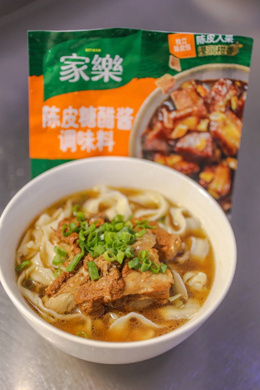 今天在朴朴超市APP上购买了家乐牌陈皮糖醋排骨酱,做起排骨来就更加顺心得手,一包到味,用高压锅10分钟就能做出非常美味的糖醋排骨面,十分轻松便捷。