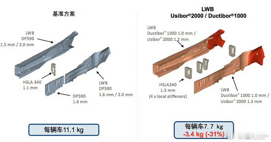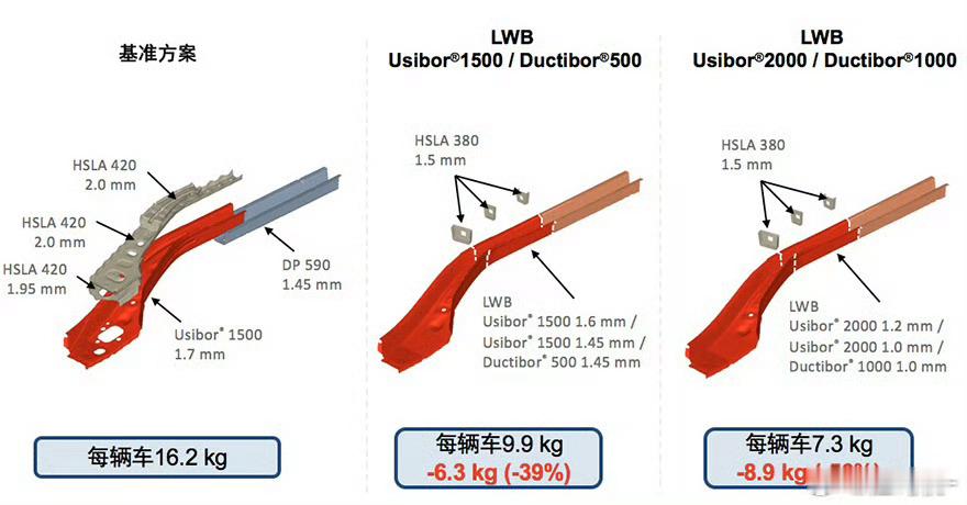 热成型钢供应商对车企的宣传,重点从来都不是安全性,而是减重。