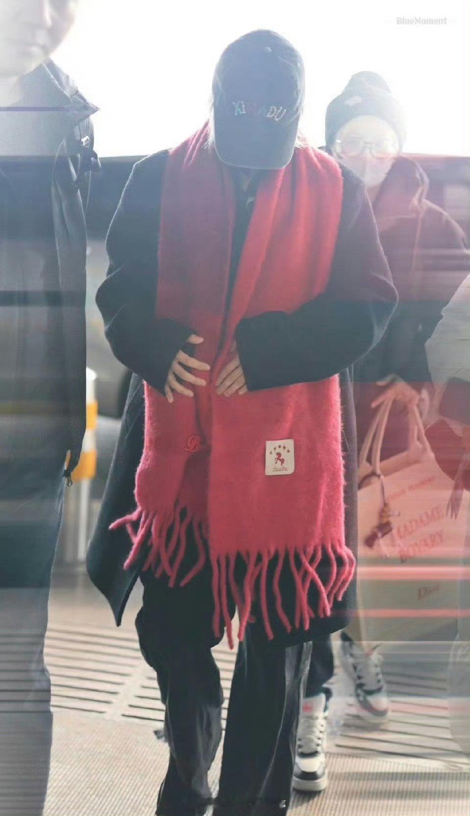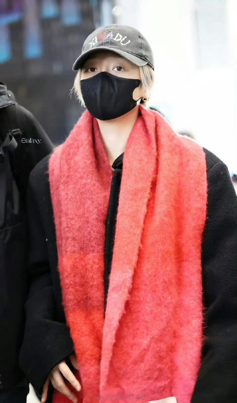 刘雨昕出发央视晚会录制路透,这个引人注目的大红围巾太喜庆了