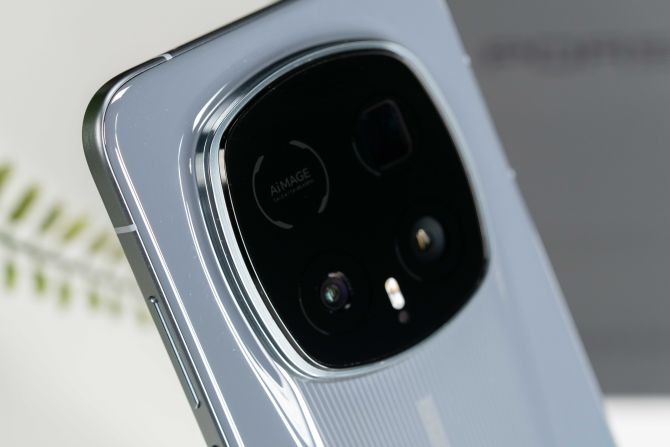 相机模组是整机背部最具辨识度的区域。整体轮廓相比上一代更趋圆润,但并没有采用单一平面处理,而是通过多道结构线条来增强层次。模组下方由两道线条划分出不同的结构面,中间隆起区域加入纵向纹理,在光线变化下能看到比较明显的立体起伏。