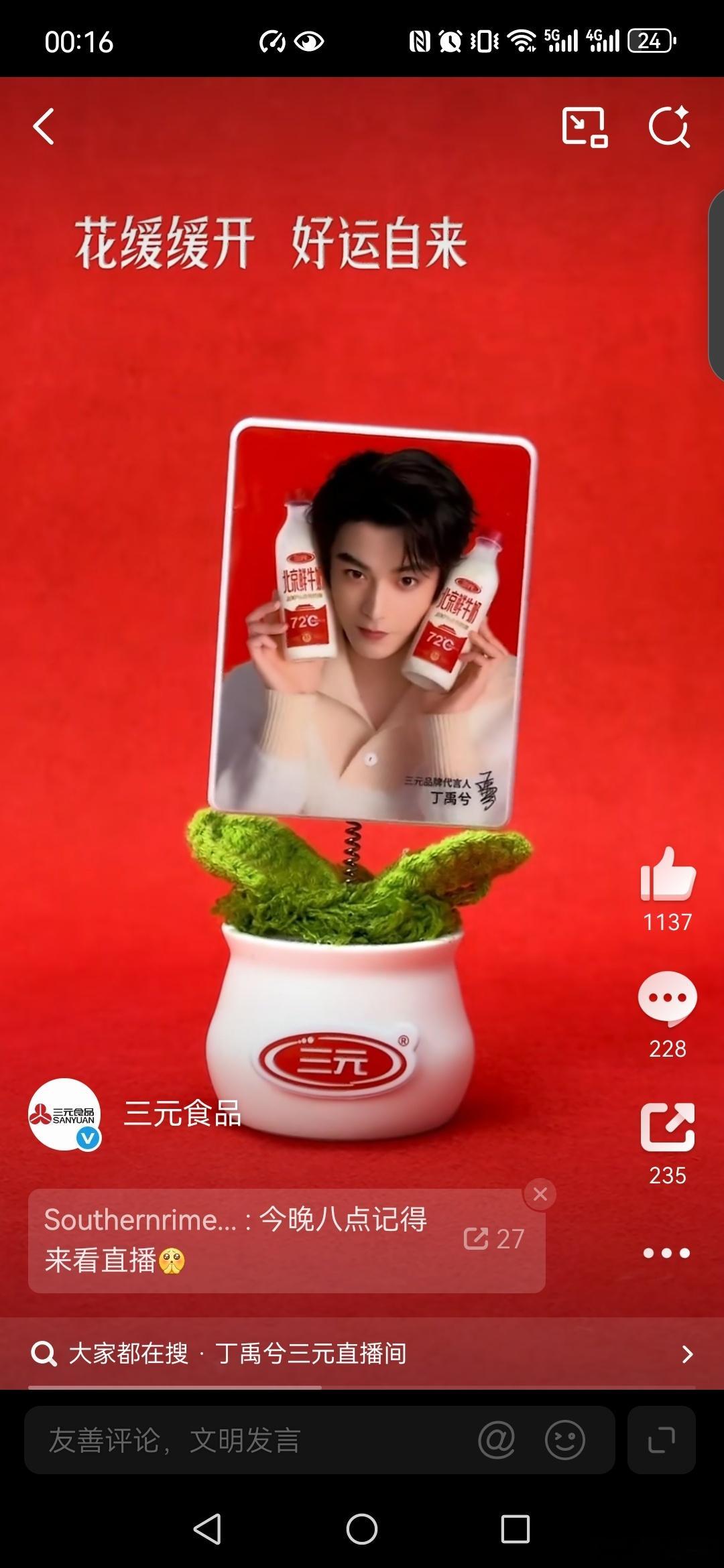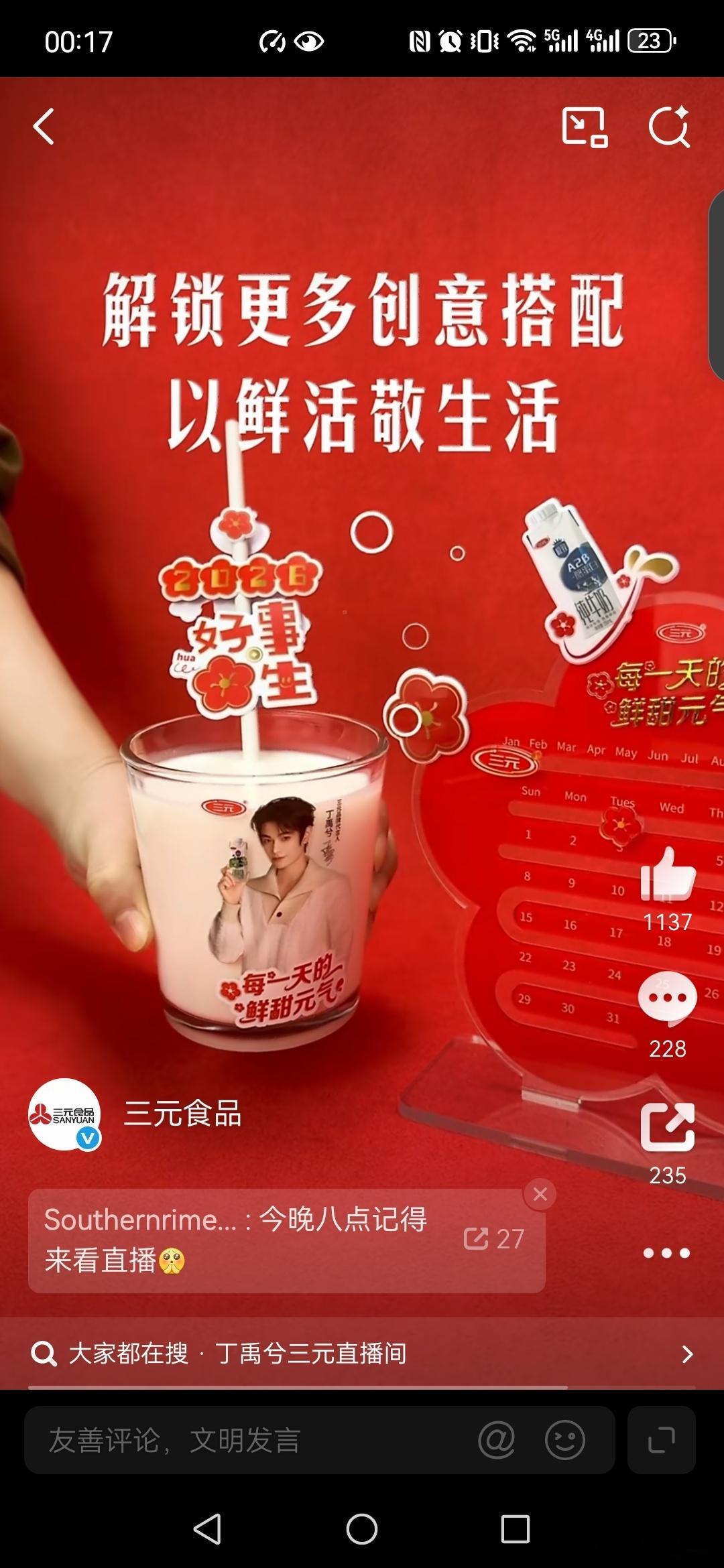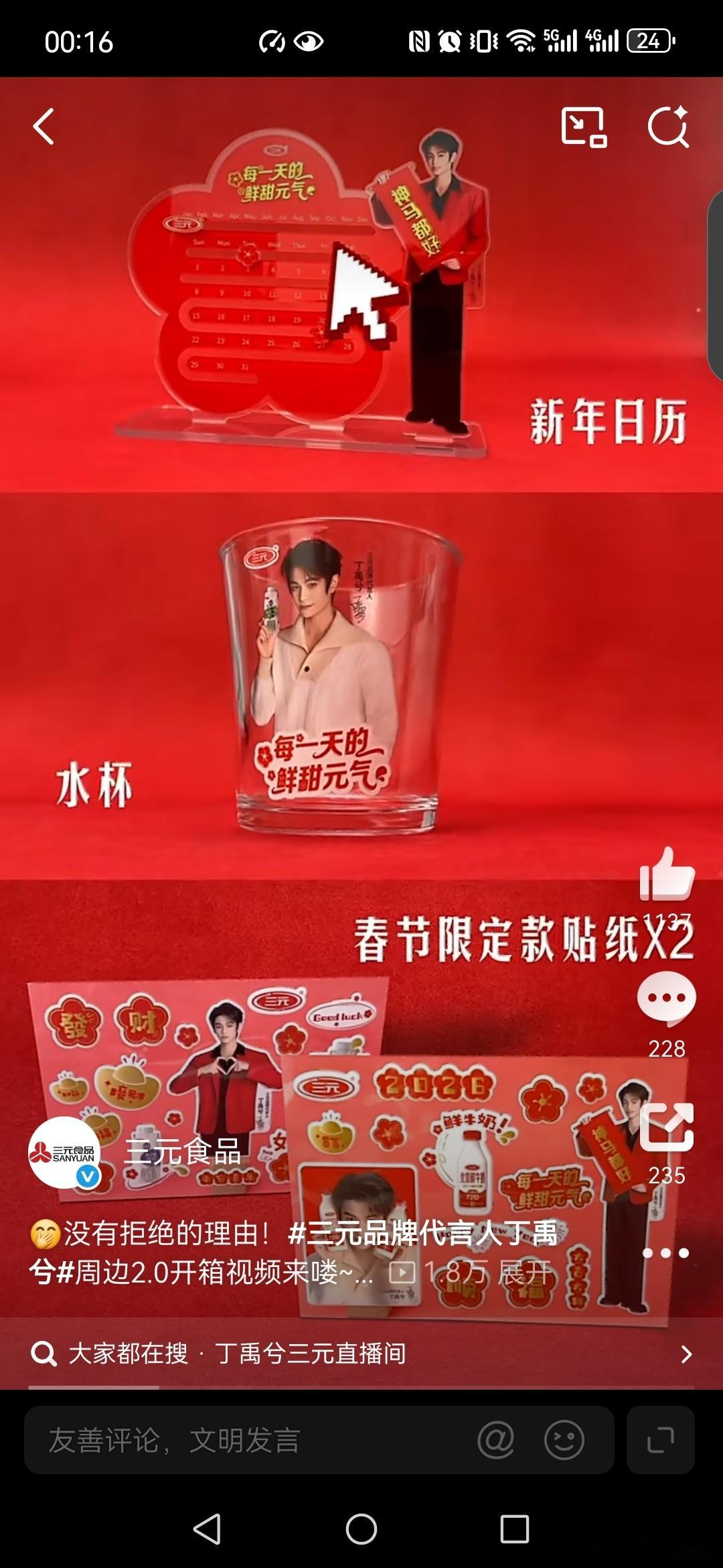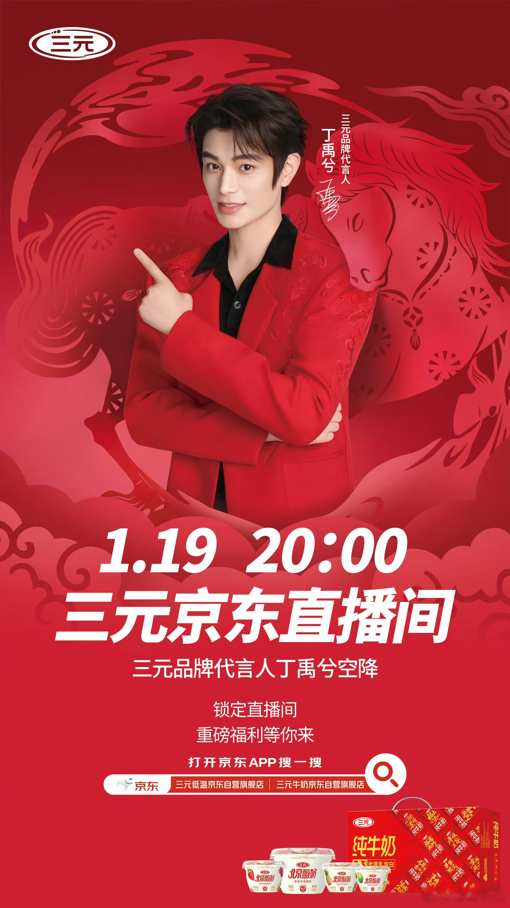 三元品牌代言人丁禹兮三元北京酸奶 恭喜丁禹兮成为三元品牌代言人,一起解锁三元北京酸奶携带丁禹兮送的年味周边礼盒,礼盒包括: 一是春节限定款贴纸共有2张,贴纸设计融入了春节马年元素与三元品牌特色。 二是水杯1个,上面印有三元品牌标识和丁禹兮相关图案。 三是新年日历1份,有三元元素,丁禹兮照片。 四是新春礼盒1个,可以收纳上述物品,包装采用春节马年的主题设计,马年送三元和丁禹兮照片, 一起带回家,一起过大年, 和三元品牌代言人丁禹兮,一起相约J/D三元直播间,解锁更多惊喜!当然,家人们建议通过官方渠道(如三元京东自营旗舰店)购买,以确保获得完整礼品。
