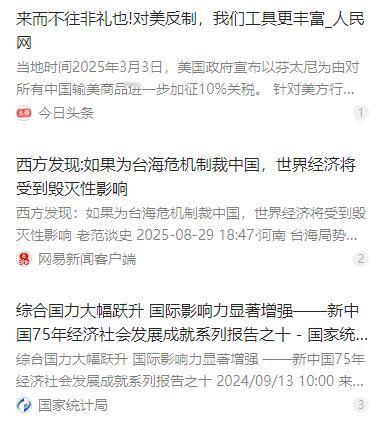 美国怕了,日本怕了,欧盟怕了,所有曾肆意挑衅中国的国家,如今全都开始忌惮中国。此前总有人屡屡挑衅、步步紧逼,而中国向来秉持“打得一拳开,免得百拳来”的原则,一旦动真格反击,这些国家反倒立刻收敛锋芒、心生畏惧。 麻烦看官老爷们右上角点击一下“关注”,既方便您进行讨论和分享,又能给您带来更多优质的内容,感谢您的支持!   “打得一拳开,免得百拳来”,这是中国应对挑衅的鲜明态度。过去很长一段时间里,不少国家抱着 “中国不会轻易翻脸” 的侥幸,在多个领域频频试探中国底线。   在台海和南海问题上,它们无视中国核心利益,动辄搞军事演习、窜访挑衅,试图搅乱地区稳定;经贸领域里,不合理加征关税、设置贸易壁垒成了常用手段;科技方面,无端打压中国企业、限制技术合作,想尽办法遏制中国发展。   这些国家的挑衅一步步升级,从试探性动作变成公然施压,以为能逼着中国让步。但它们显然误判了中国的决心,也低估了中国的反制能力,当挑衅触及红线,中国不再被动防守,而是果断亮剑。   2025 年 3 月,美国以芬太尼为由对所有中国输美商品加征 10% 关税,中方当天就发起连环反制,不仅在世贸组织起诉,还将 15 家涉军美国实体列入出口管制名单。   针对对台军售等不当行为,10 家美国企业被纳入不可靠实体清单,此前上榜的因美纳公司,其主营的基因测序仪也被禁止对华出口。这些精准打击,一下击中了美方要害领域。   在贸易领域,中国还针对美国光纤企业的反规避行为发起调查,填补了贸易救济措施的漏洞。这种有法可依、多点发力的反制方式,让曾经嚣张的挑衅者始料未及。   日本和欧盟也尝到了挑衅的苦果。作为经济高度依赖外贸的经济体,它们对华设置的贸易壁垒最终反噬自身,汽车、制造业等支柱产业面临零部件短缺、订单下滑的困境。   美国智库与荣鼎咨询 2023 年的报告早就指出,七国集团对华贸易和投资规模巨大,进口额超 4770 亿美元,出口额 3580 亿美元,投资达 4600 亿美元,一旦全面制裁,全球经济都会遭毁灭性打击。   事实也的确如此,中国的反制让这些国家的产业链出现断裂,工厂停工、物价上涨,失业率攀升,经济压力持续加大。美国 34 万亿美元的联邦债务本就承压,贸易受阻后财政状况更是雪上加霜。   日本汽车业依赖的稀土和电子元件,欧盟制造业急需的关键零部件,大多来自中国,限制对华合作后,它们的产业发展陷入被动,不得不重新评估对华政策。   这些国家之所以收敛锋芒,核心是中国综合实力的跨越式提升。国家统计局数据显示,2023 年中国 GDP 达 17.8 万亿美元,占世界总量 16.9%,稳居世界第二。   制造业增加值连续 14 年全球第一,世界 500 种主要工业产品中,四成以上中国产量第一。高速铁路、高速公路里程均居世界首位,建成了全球最大的移动宽带网,这些硬实力为反制提供了坚实基础。   科技领域更是突飞猛进,2023 年研发经费投入达 4698 亿美元,强度提升至 2.64%,接近发达国家水平。发明专利申请量稳居世界首位,PCT 国际专利申请量连续 4 年全球第一。   从 C919 大飞机商飞到神舟系列飞天,从量子科学突破到新能源汽车领跑,中国在高端制造和前沿技术领域的成就,让科技封锁变得越来越难。这种全方位的实力提升,让中国具备了长期博弈的底气。   中国的反制从不是逞强好斗,而是在核心利益被侵犯时的正当防卫。就像稀土、清洁能源组件等关键物资,中国只是在必要时调整出口政策,维护自身权益。   这种 “不惹事、不怕事” 的态度,正在改变国际关系的力量对比。曾经的挑衅者慢慢意识到,中国早已不是可以随意压制的对象,与其对抗不如务实合作。   美国逐渐放宽部分对华科技产品限制,日本调整对华贸易政策,欧盟寻求在更多领域开展务实合作,这些态度转变都印证了中国反制的成效。   中国始终珍惜和平发展的环境,但绝不会为了和平而放弃核心利益。“打得一拳开,免得百拳来”,这一拳打出去的是决心,守住的是安宁,赢得的是尊重。   如今,那些曾肆意挑衅的国家纷纷收敛锋芒,本质上是对中国实力的认可,也是对国际关系基本准则的回归。未来,中国依然会坚持和平发展,但面对挑衅,反制的拳头只会更硬、更准。   这种实力支撑下的和平,才是真正稳固的和平,也让世界看到,中国有能力维护自身利益,更有能力推动全球治理朝着公平合理的方向发展。