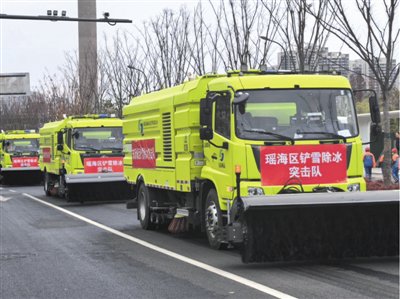 高新区城管执法大队完善应急指挥调度体系,优化应急队伍,检修保养设备,开展专项培训,足量储备环保型融雪剂,并动员沿街单位、商户落实“门前三包”参与清雪。新站高新区应急和城管局建立联动机制,与气象、交警部门及12345热线密切沟通,组织应急演练提升实战能力,全面做好应急物资储备保障。
