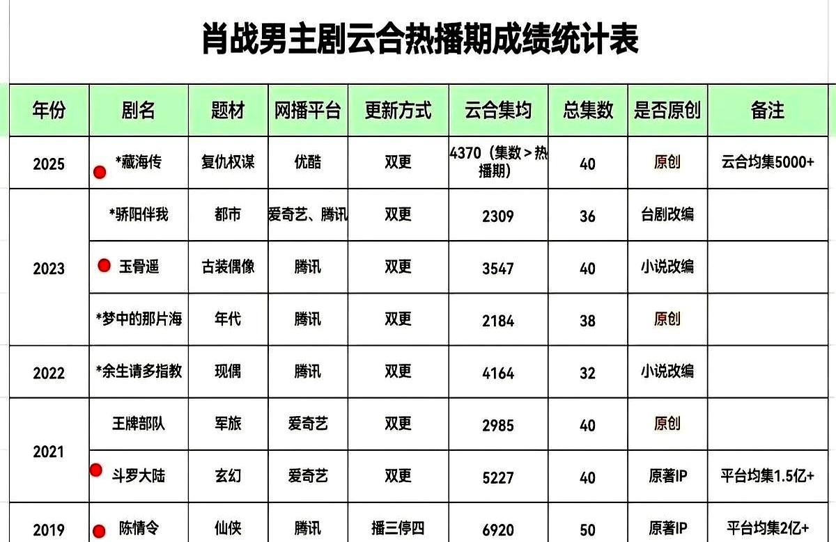 《玉骨遥》单日3547万,听着唬人,其实也就刚够肖战自己跟自己比。跟《陈情令》的6927万差半截,跟《斗罗大陆》的5083万也矮一头,可放在2023年古偶混战里,它居然还能冒头,只能说同行衬托得好。大盘缩水15%,观众被短剧抢走,古偶扎堆,这剧还能留人,靠的不是剧情,是肖战那张脸和死忠粉的遥控器。 “古装从没掉出三千”上热搜,听着像粉丝自嗨,翻数据倒也不算吹牛。四年三部古装,最低3500万打底,在流量里确实稳。但稳不代表能一直稳,市场越来越抠,观众越来越挑,光靠脸续命迟早翻车。 好在《藏海传》出来救场。央视首播,优酷全球跟播,单日市占冲40%,集均4100万,豆瓣7.1,直接打脸之前的唱衰。肖战这次靠藏海把权谋演明白了,证明流量还能升级。只是下次再拿古装出来遛,数据要是掉下3000万,滤镜就真碎了。