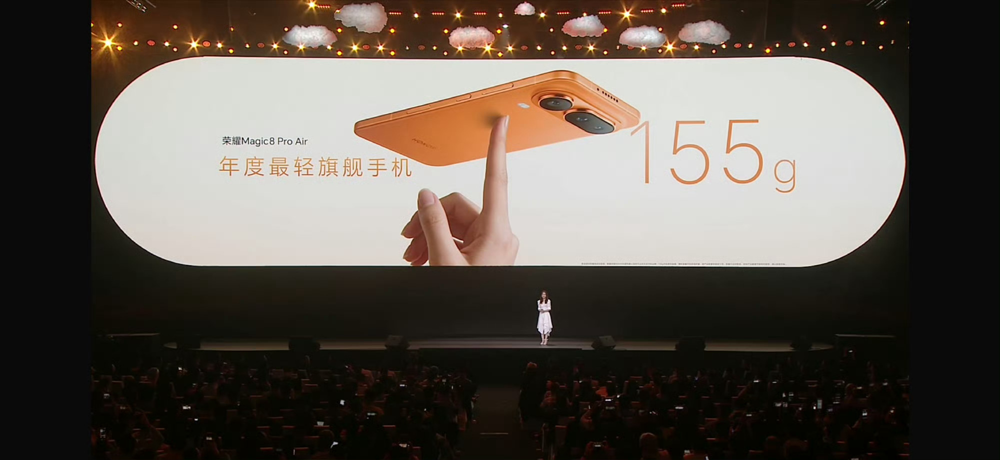 荣耀Magic8 Pro Air主打轻薄与全能!6.1mm超薄机身+155g超轻重量,刷新直板旗舰纪录的同时,握感也非常好——单手握持拇指能轻松覆盖6.31英寸小直屏,长时间刷视频、打字完全无手腕酸胀感,迷你小包随便塞,女生肯定会爱~当然了,它轻薄不妥协的底气:轻橙、仙紫等配色的7涂7烤光感叠涂工艺,让机身自带高级金属缎光质感,颜值适配各种穿搭;暗藏5500mAh青海湖大电池+80W快充,彻底告别轻薄机续航焦虑。天玑9500旗舰芯+全焦段影像系统,日常办公、玩游戏、拍风景都能打,还标配IP68防水和巨犀玻璃,耐用度拉满。荣耀这次精准戳中年轻人痛点,既打破轻薄=性能缩水的行业偏见,又把便携美学做到极致,这样无短板的小机身旗舰,大家觉得如何呢荣耀发布会