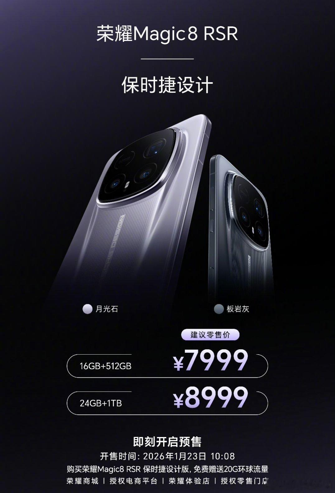 4999元起,国补后4499元起,荣耀Magic8 Pro Air发布。荣耀Magic8 RSR 保时捷设计,7999元起。今晚发布的两台新手机,都很有想法啊,而且价格也不贵,冲一台?