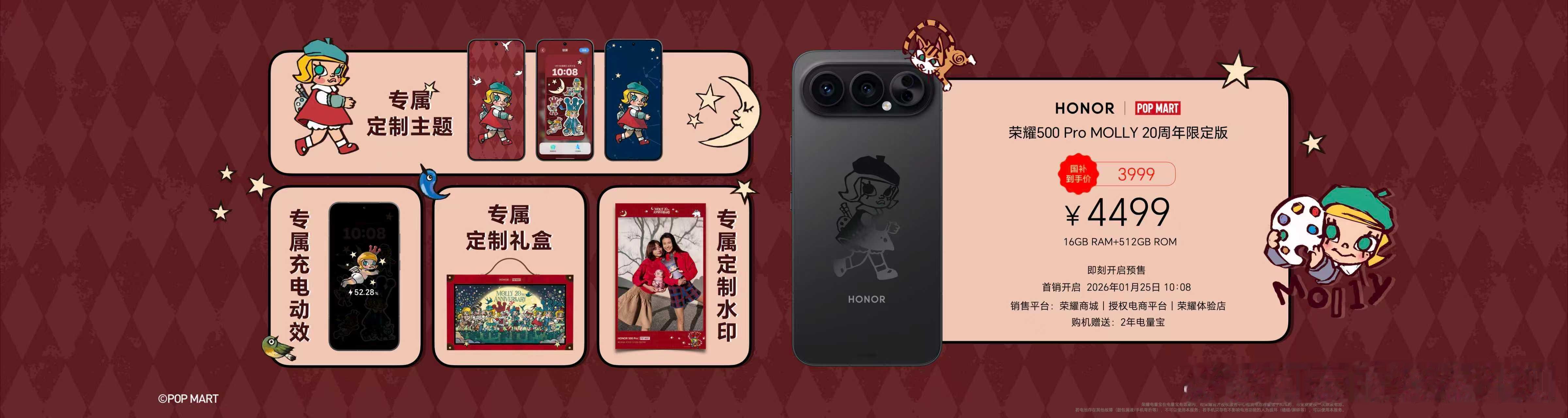荣耀Magic8 Pro Air价格来了!有12GB+256GB、12GB+512GB、16GB+512GB和16GB+1T版本,售价分别为4999元、5299元、5599元和5999元,国补到手价分别为4499元、4799元、5099元和5499元。荣耀500 Pro MOLLY 20周年限定版16+512GB,售价为4499元,国补后价格为3999元。1月25日10点08分正式开售。荣耀Magic8 RSR保时捷设计,16+512GB版本价格为7999元,24+1TB典藏版的价格为8999元。荣耀发布会