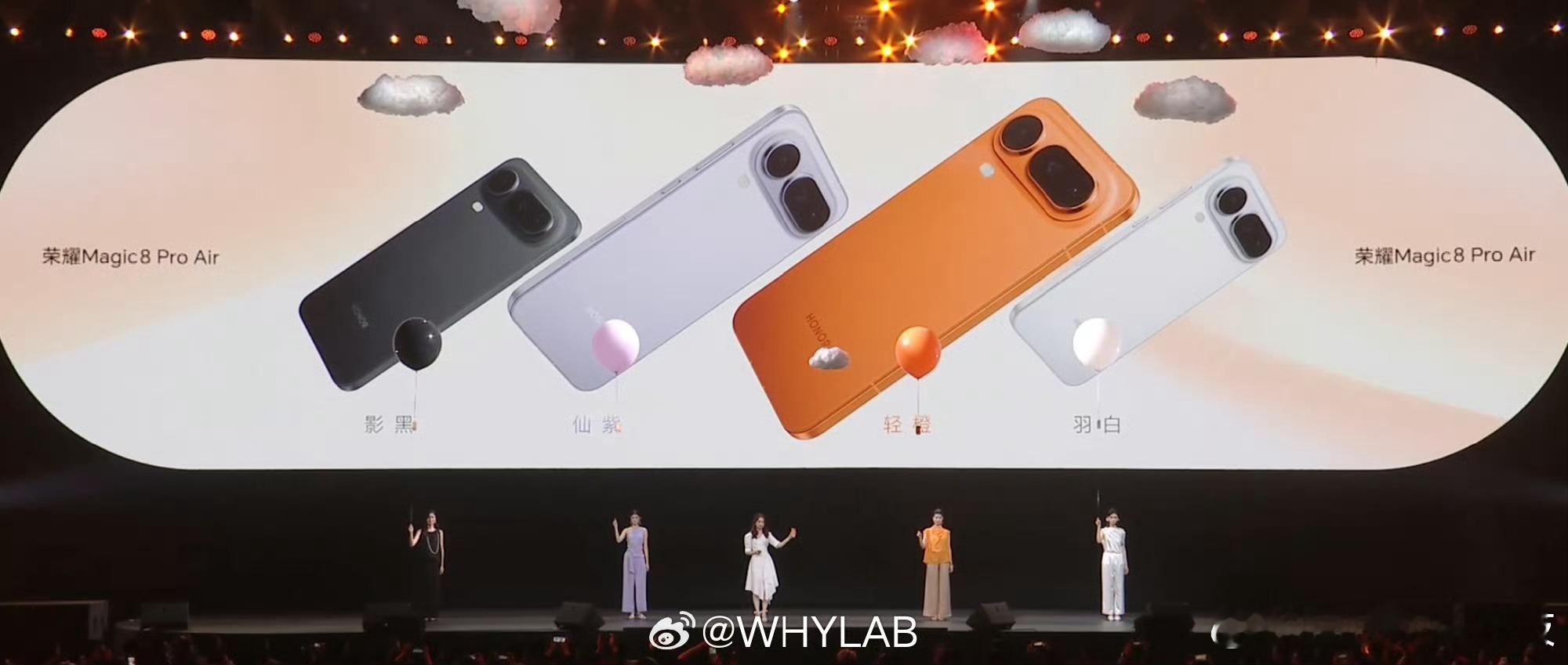 荣耀 Magic8 Pro Air 四款配色,轻橙、仙紫、羽白、影黑