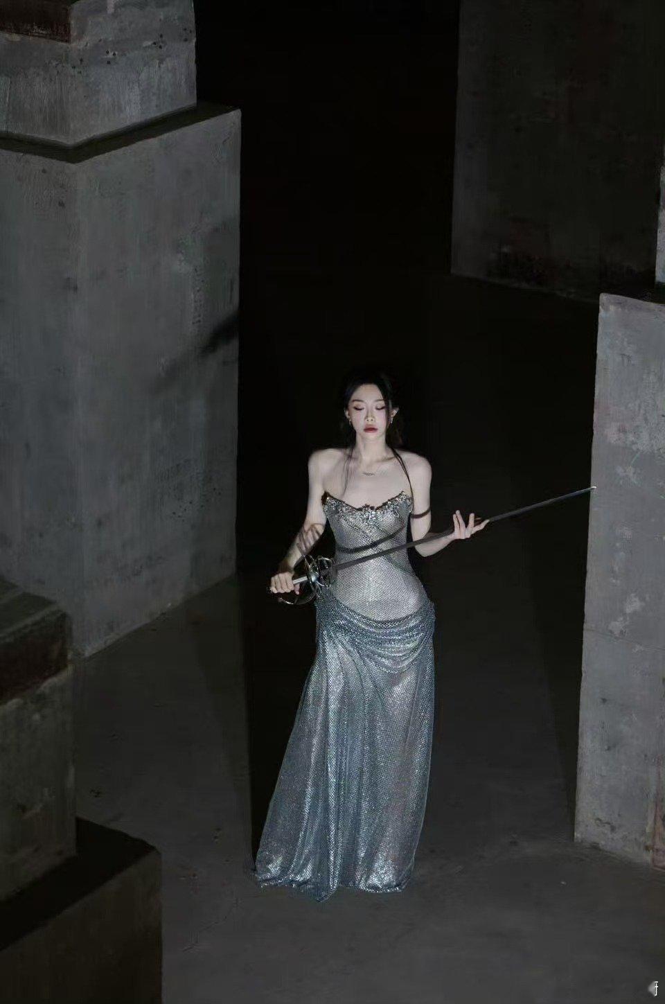 喻言银裙缀满星子碎片,在暗夜里流淌成银河。 剑锋劈开光影结界,她携月光锋芒登场。 每个转身都是诗行,把清冷写成滚烫传奇。时尚32周年时尚之夜