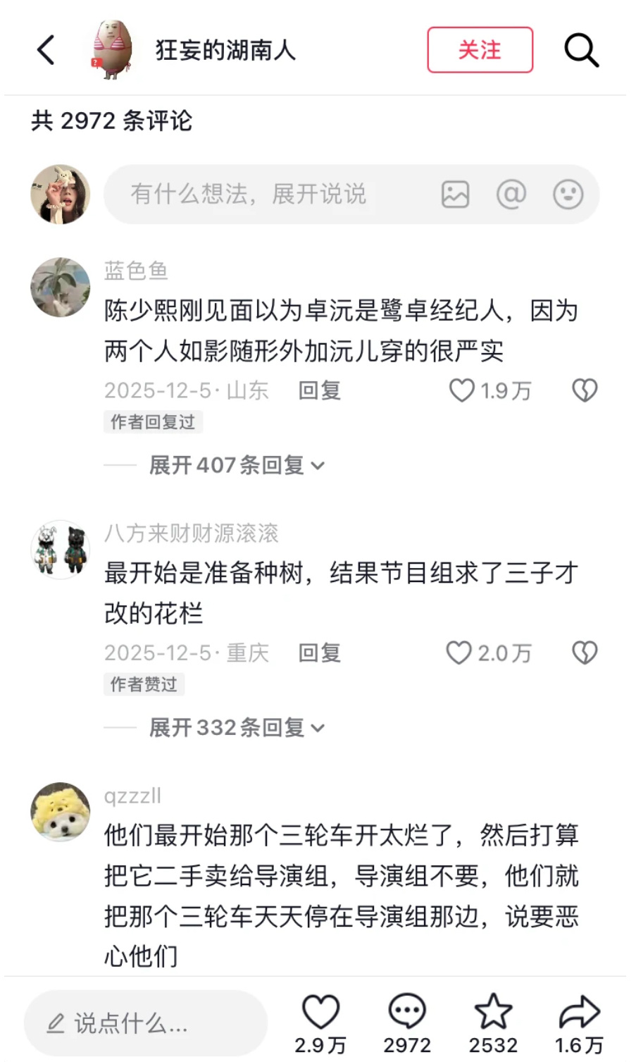 第一季刚开始的那段时间,杨导为了他们最真实的状态不让节目组跟他们过多接触,也不干预他们的各种决定当时赵一博要养一千只鸡……节目组实在是看不下去了说这太多了不让养,一博据理力争“人家正规养殖场都是三五千起的,我这才一千!”
