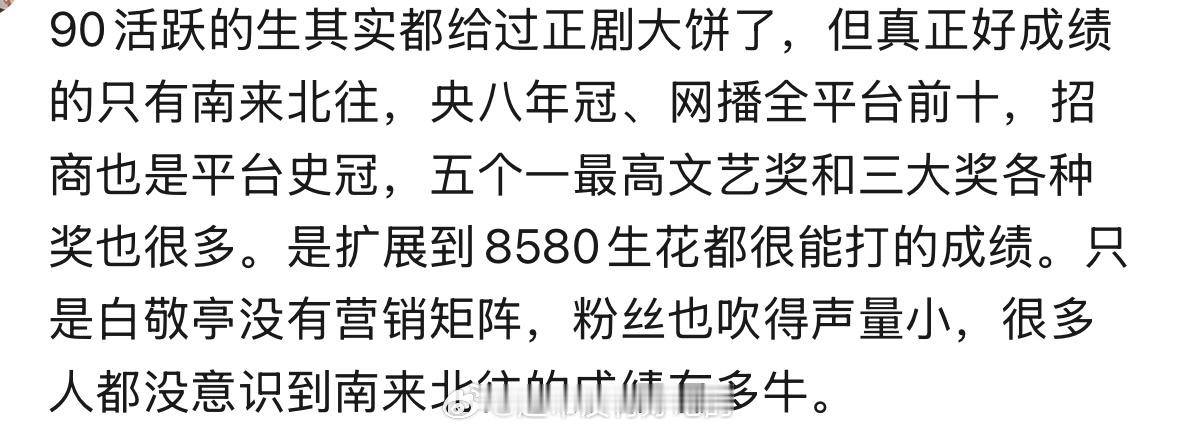 白敬亭南来北往有多牛央8年冠,猕猴桃招商史冠,云合24年前十上星播出100多轮了,央视认证的台网双爆