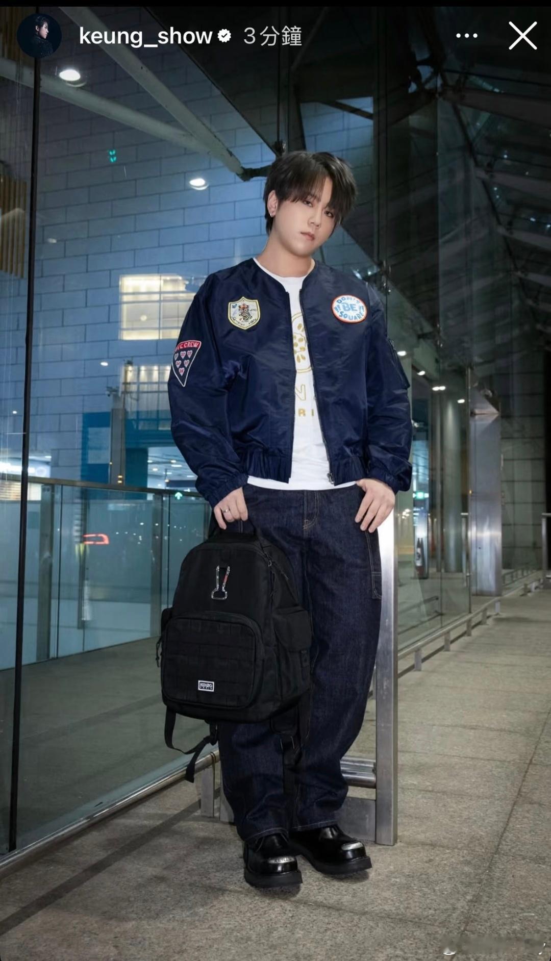 姜涛香港机场✈️ 出发去巴黎时装周啦~穿上KENZO服饰,这身衣服很帅啊男装周巴