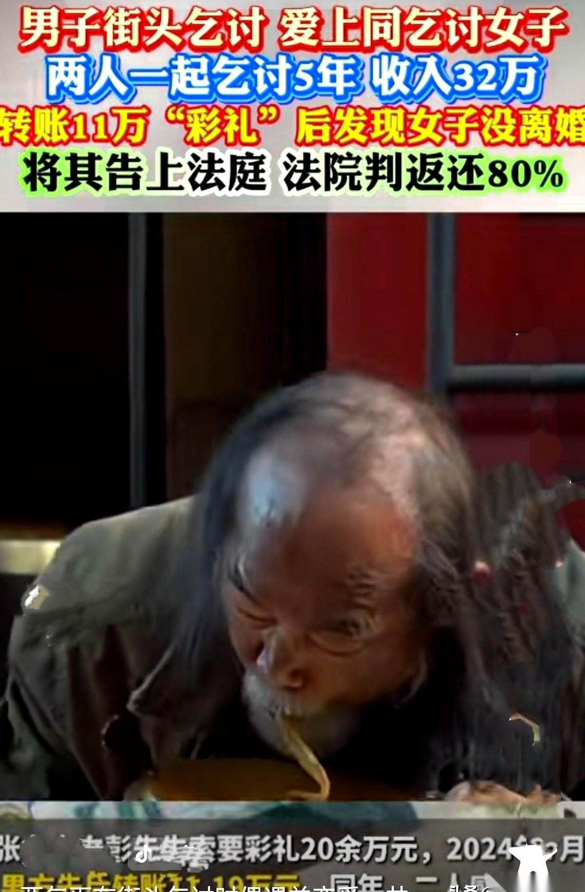 我勒个去,今天这事儿真给我看傻了。 一个大哥,离婚了,在街上要饭。碰到了一个老乡大姐,也说自己离婚了,也在要饭。 天涯沦落人啊,俩人一合计,干脆搭伙过日子吧。这一过,就是五年。 俩人白天一起“上班”要饭,晚上回出租屋相依为命。大哥觉得,这辈子就这样了,有个伴儿,挺好。 然后,大姐开口了,说要结婚可以,按老家规矩,彩礼20万。 一个靠乞讨为生的大哥,你敢信吗?但他居然答应了!他觉得遇到了真爱,为了这个“家”,值! 于是他玩了命地攒钱,4年,陆陆续续给大姐转了11万多。 结果呢?钱刚转完,大姐翻脸了,要分手。 大哥彻底崩溃,追问之下才发现一个天大的秘密——这大姐,压根就没离婚! 大哥整个人都懵了。合着我掏心掏肺,攒了半辈子的辛苦钱,是给你当婚姻的“付费体验”了? 大哥要钱,大姐不给。 还振振有词:“什么彩礼?咱俩5年一共讨了32万,这是我应得的‘业务分红’,外加照顾你的‘保姆费’!” 这逻辑,绝了。丐帮都开始搞KPI和股权分配了? 最后闹上法庭,法院也觉得这事儿太扯。判了,钱是彩礼,但念在同居五年,女方也不是一分力没出,酌情退80%。 我看完就一个感觉。 这故事里,有爱情吗?可能有过吧。 但这故事里,绝对有KPI,有风险投资,还有失败的商业并购。 原来,不管在哪个圈层,人性的戏码,都演得一模一样。