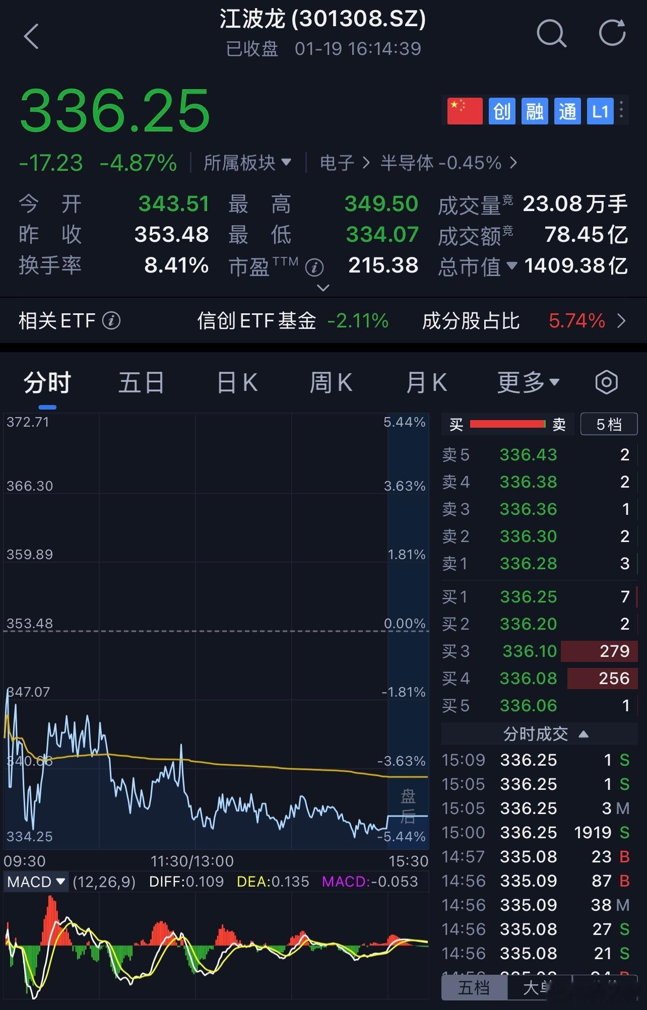 江波龙:询价转让价格为212.09元/股 较收盘价折价36.92%股民真惨