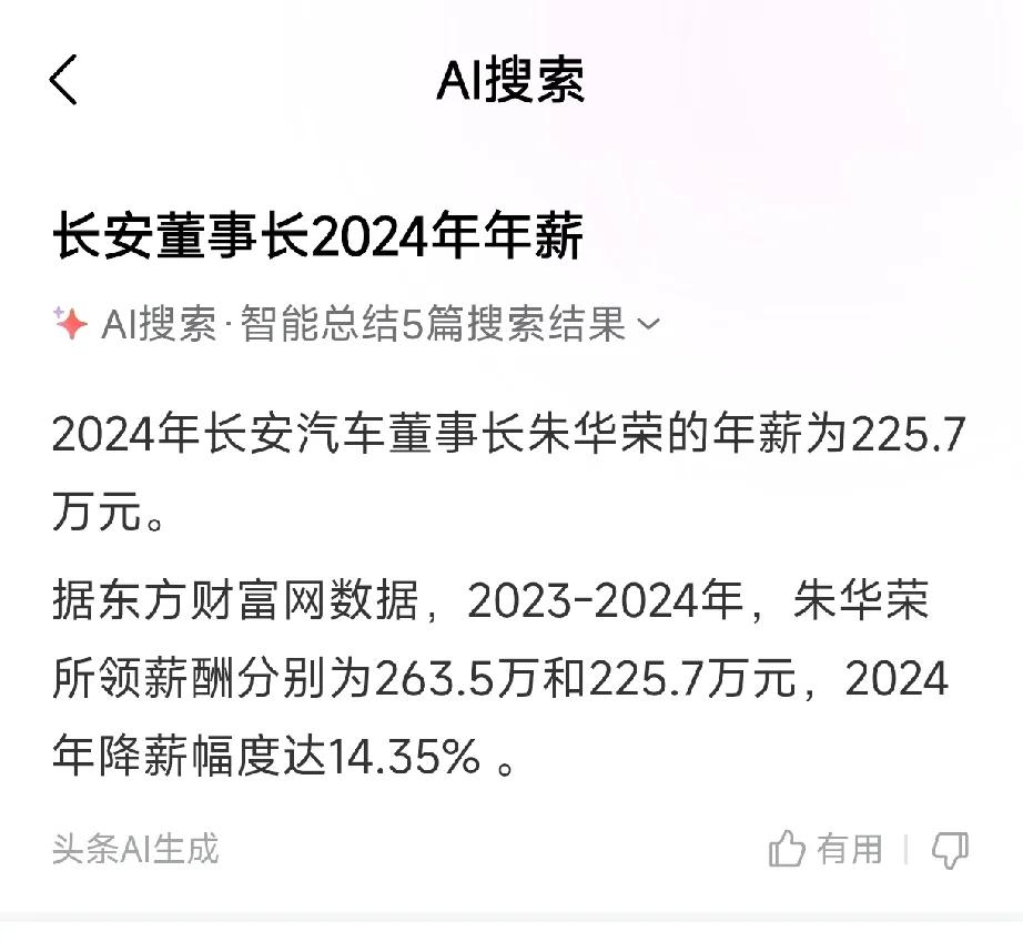 中国一汽董事长邱现东2024年应付年薪为90.97万元,东风汽车集团董事长杨青应付年薪为86.86万元。 DF如何合并C安? 长安董事长的薪酬更高…… 这个数据对不对呢? 长安的薪酬如图一和图二,豆包和头条AI分析数据,明显比一汽和东风高出不少……2024年长安还不是一级央企,具有一定的灵活性! 不过央企相对于民营企业高管,那就差别更大了,民营企业董事长可能高达上千万。 ……………… ………… …… 来自国资委2026年1月14日集中披露的央企负责人2024年度薪酬信息,以下为关键要点: 核心数据(税前应付年薪) 中国一汽董事长邱现东:90.97万元,加单位缴存社保、年金等16.17万元,合计约107.14万元。 东风汽车集团董事长杨青:86.86万元,加单位缴存部分14.87万元,合计约101.73万元。 补充对比 总经理层:一汽刘亦功88.69万元,东风周治平65.15万元(任职未满一年)。 口径说明:为税前总额,含基本年薪、绩效薪酬与单位缴存部分,非税后到手收入。 行业定位:两家均处央企薪酬第二梯队,符合国资委管控要求,与民企车企高管薪酬差异明显。