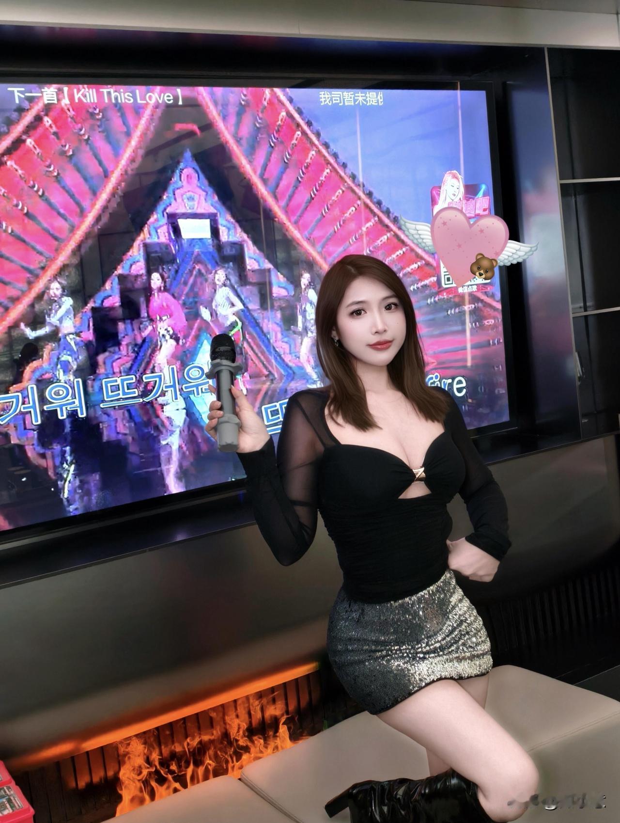 KTV嗨唱时刻,黑裙闪亮登场!🎤💃🔥
