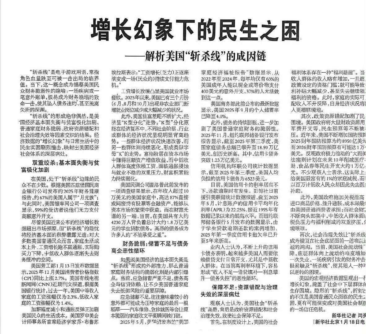 记录者 新华社、人日……终于下场评论霉里贱“斩杀线”了,很好!抢占舆论战的主要阵地,集火霉里贱万恶资本主义内核的时候到了!早该如此!必要的时候应该对北美输出革命!人民日报评美国斩杀线