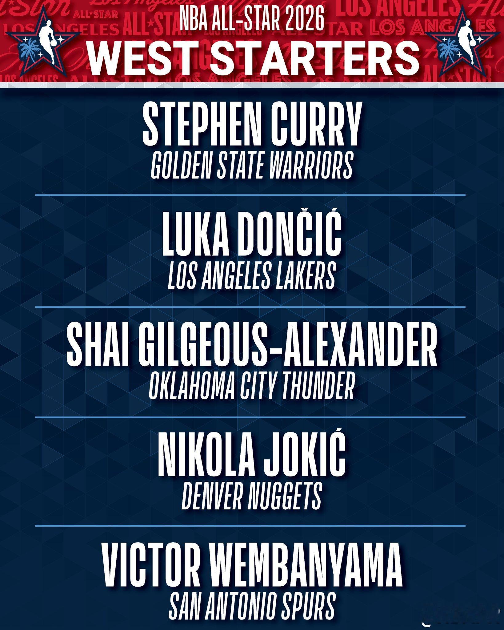 2026洛杉矶全明星正赛的首发阵容正式公布,字母哥和卢卡-东契奇领衔东西部全明星首发阵容,勒布朗·詹姆斯连续21年全明星首发纪录终结。2026NBA全明星东部首发阵容:字母哥(雄鹿)、杰伦·布朗(凯尔特人)、布伦森(尼克斯)、坎宁安(活塞)、马克西(76人)2026NBA全明星西部首发阵容:东契奇(湖人)、库里(勇士)、亚历山大(雷霆)、约基奇(掘金)、文班亚马(马刺)
