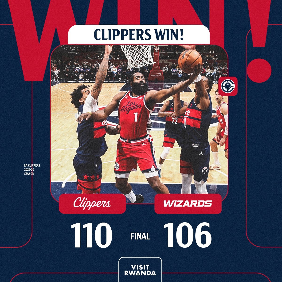 哈登36分,20罚18中,快船战胜奇才,排名超灰熊,升至西部第十。