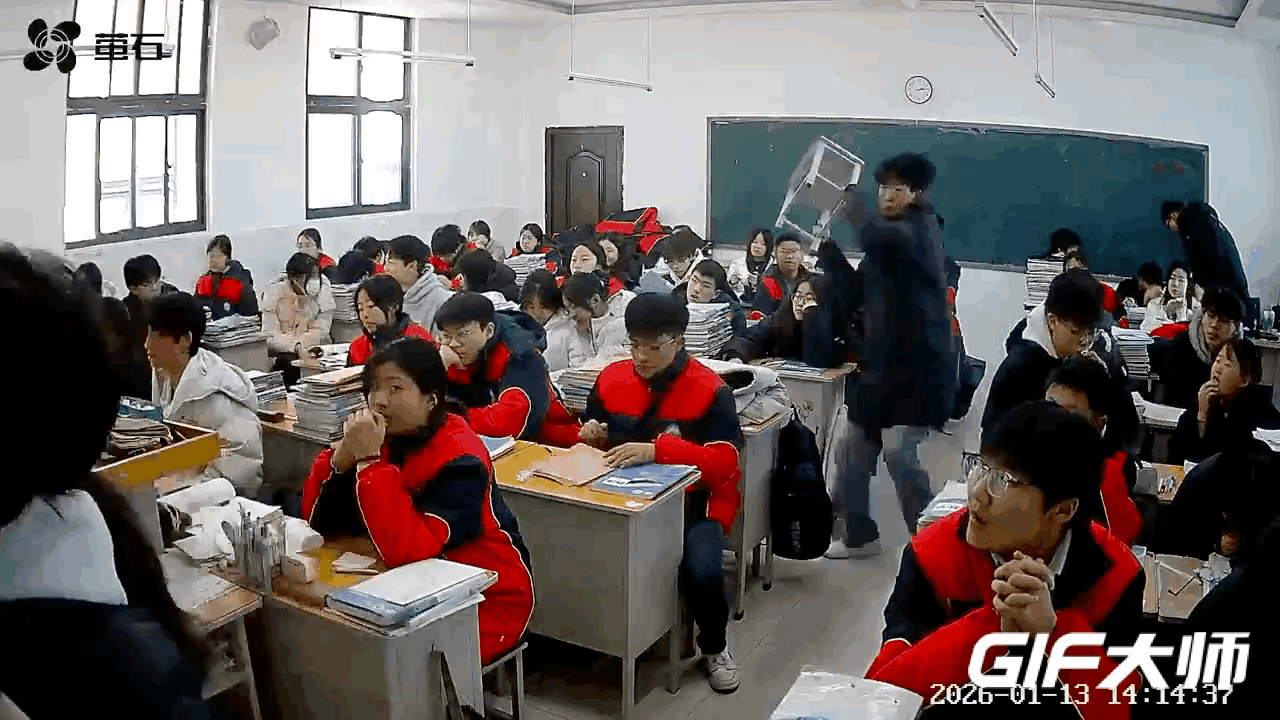 这个视频我看了好多遍,拿凳子的男同学是下了狠手的,他抡起凳子的动作和砸到同学头上的力道都很大,而且可以看到被砸同学的头发都被凳子抡起来的一阵风刮起来,真真切切的砸到了头上,被砸同学当时就恍惚了。 虽然不知道具体原因,但是这个穿黑衣服的男同学应该受到处罚,被打同学的家长应该报警。 这是学校不是沙场,是学习知识的地方,不是撒野的地方,更不是伤害他人的地方。 在学校出现这种事情,学习老师应该及时处理,打人的同学戾气太重,如不严加管教,定会闯下更大的祸端。