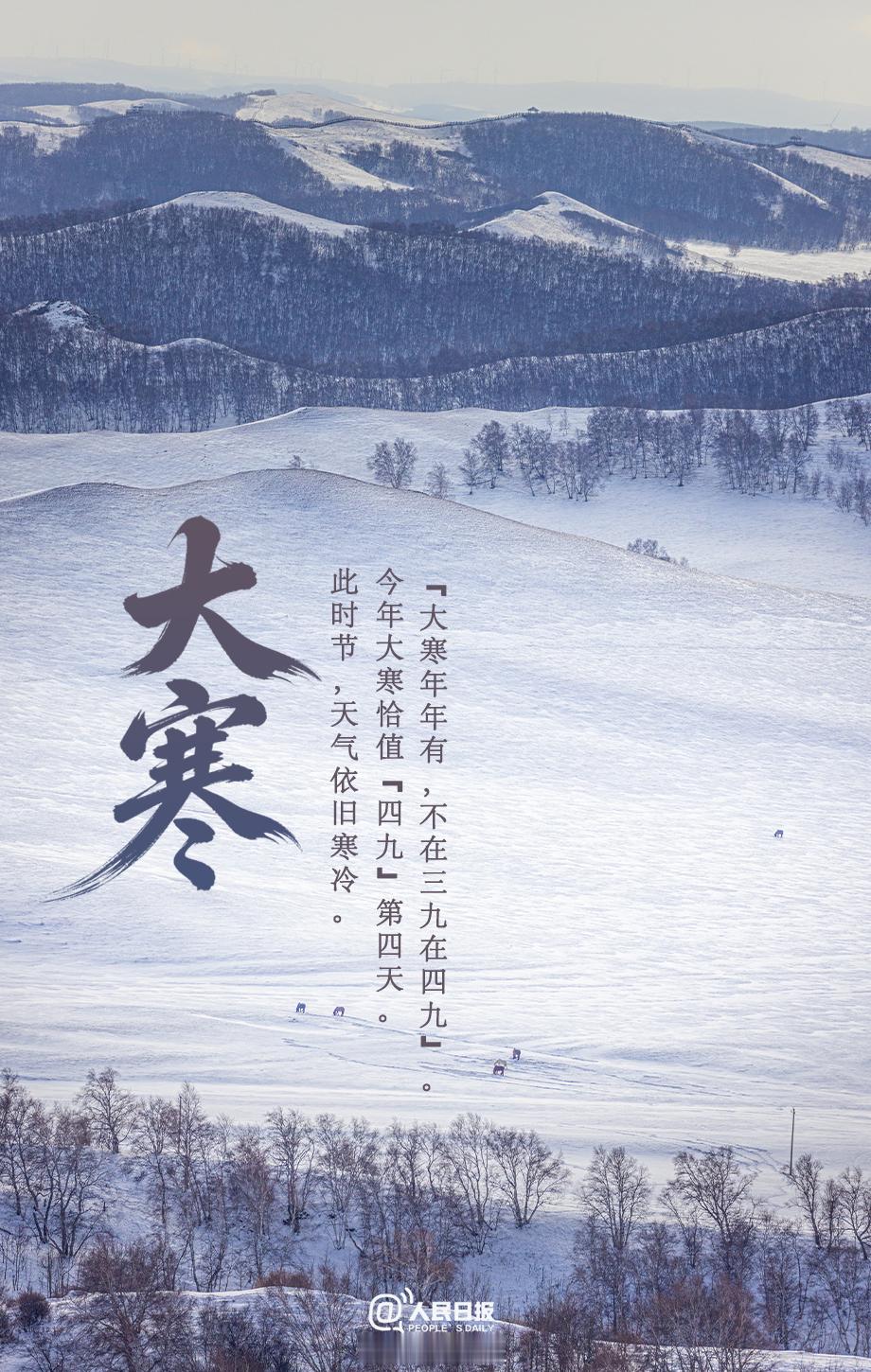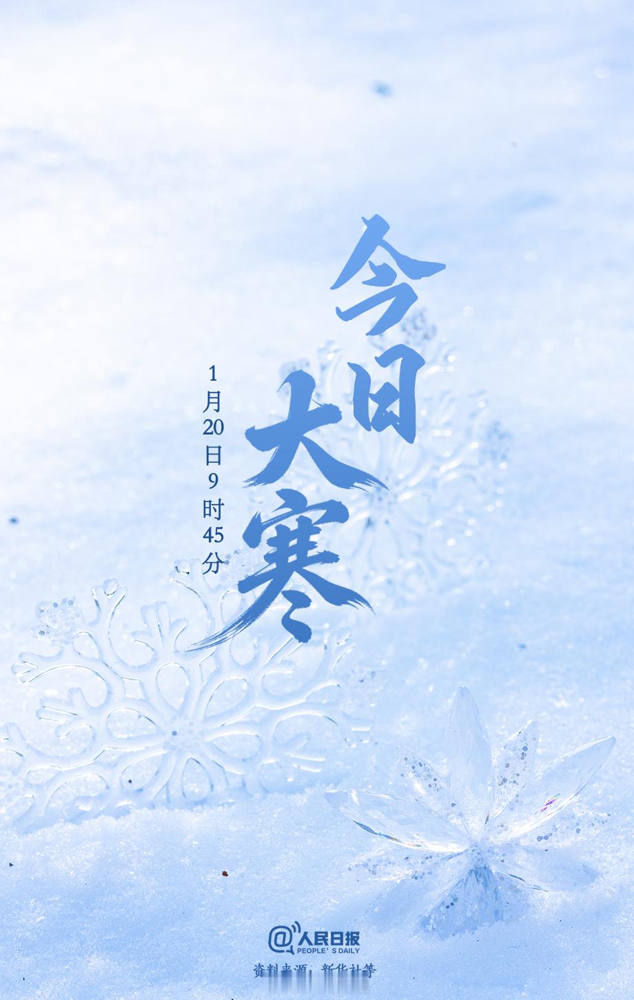 大寒一到准备过年【今日,大寒】①北京时间1月20日9时45分将迎来大寒;②大寒是二十四节气最后1个节气,也是冬季最后一个节气;③今年大寒恰值“四九”第四天,此时节,天气依旧寒冷;④今年大寒,正值腊月初二,民俗中有“大寒迎年”的说法。下一个节气就是立春了,多穿点,期待春天的到来。大寒