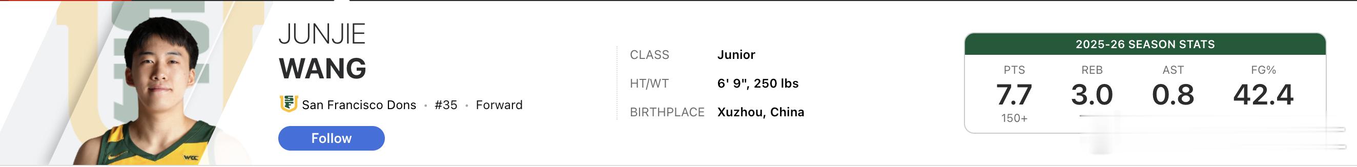 在近期三分手感回暖后,王俊杰本赛季三分球命中率提升到了38.5% 场均可以命中1.2个三分球。看看俊杰能不能在赛季结束时把三分命中率稳定在35%以上,同时场均三分命中数能来到1.5个左右。王俊杰海外中国球员NCAA