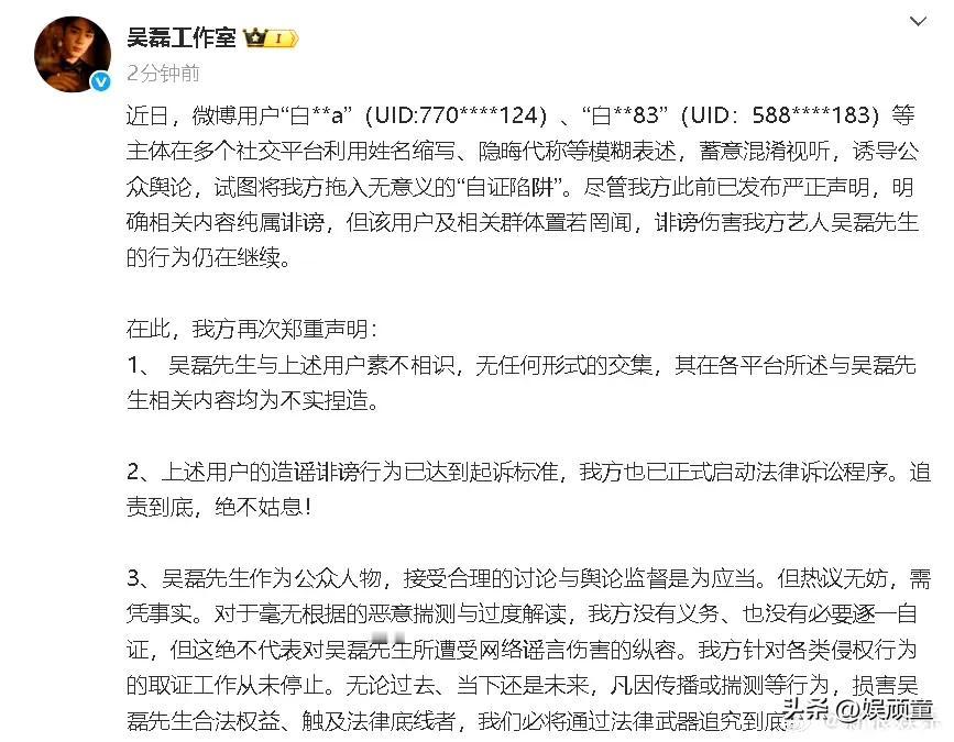 清者自清,吴磊硬杠白珊珊,说到底就是有底气… 吴磊工作室最新回应白珊珊事件,硬气