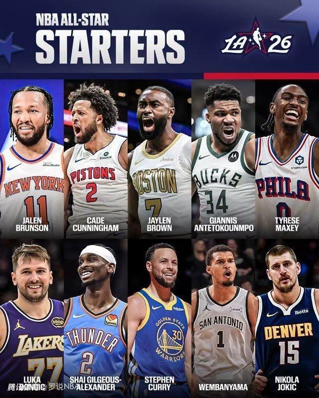2026NBA全明星东部首发2026NBA全明星西部首发全明星首发正式出炉!东契奇当选票王,而球员投票,AKA同行选择奖里,约老师和CC分列各自分区第一,华子球员投票第四,媒体第五,要想进首发,需要提升的还是球迷投票,继续加油吧。东部其实没啥意外,感觉很合理詹杜错失首发,西部还是太卷了,