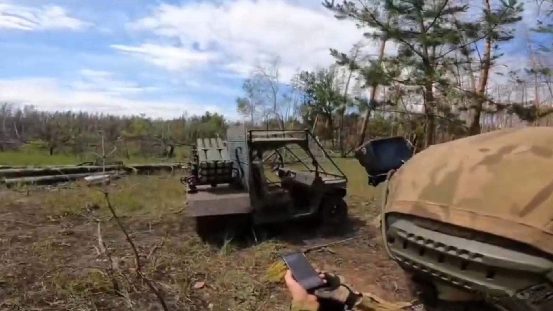 俄军在山东猫全地形车上安装朝鲜75式107毫米多管火箭炮系统。