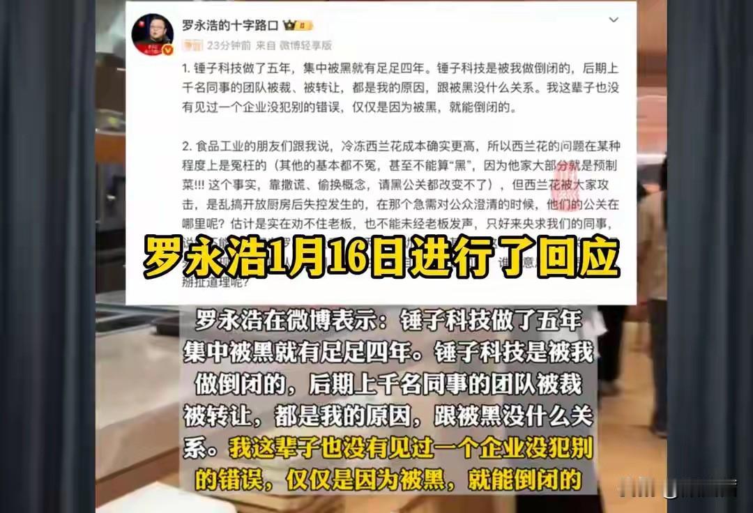 西贝关店102家甩锅舆论?罗永浩硬刚回应,揭海外不用预制菜的双标! 这场风波要从去年9月说起,罗永浩吐槽西贝高价卖预制菜,呼吁立法强制标注,直接引爆舆论。今年1月15日,西贝创始人贾国龙确认要关闭102家门店,占总门店数三成,称是125天的舆论污蔑导致亏损超5亿,还澄清自己无海外资产。 1月16日罗永浩发文回应,直言没有企业会单靠“被黑”倒闭,问题根源在自身。他承认冷冻西兰花是误会,但指出西贝偷换预制菜概念,更质疑其双标——海外门店现做现炒,国内正餐却大量用预制菜,这和发达国家的行业惯例不符。 罗永浩还提到,贾国龙的强硬应对是“自残”,老一辈企业家难适应市场变化。同时他也坦言疲惫,担心因揭发问题遭遇风险,庆幸自己是公众人物能避险。 西贝为自救发过百万代金券、降价20%,但客流还是回落。如今近4000名员工受关店影响,这场争议也让大家关注到餐饮行业的成本压力和消费者知情权问题,比口水战更值得深思。