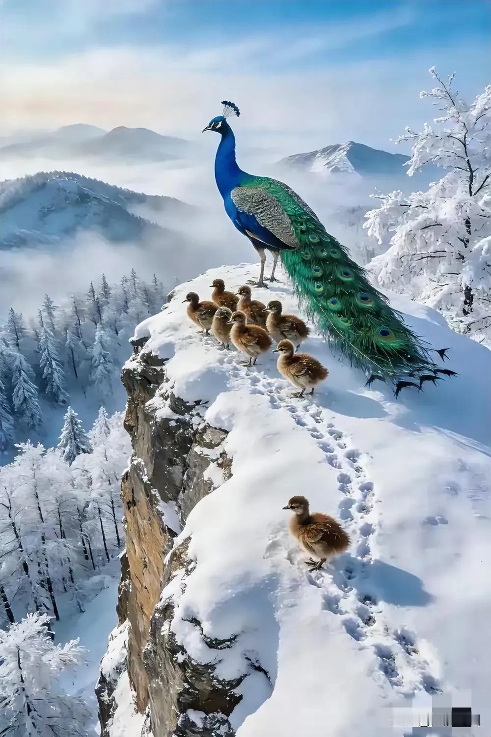 冬日仙境中的孔雀一家,惊艳了整个雪景!🌨️🦅👨👩👧👦