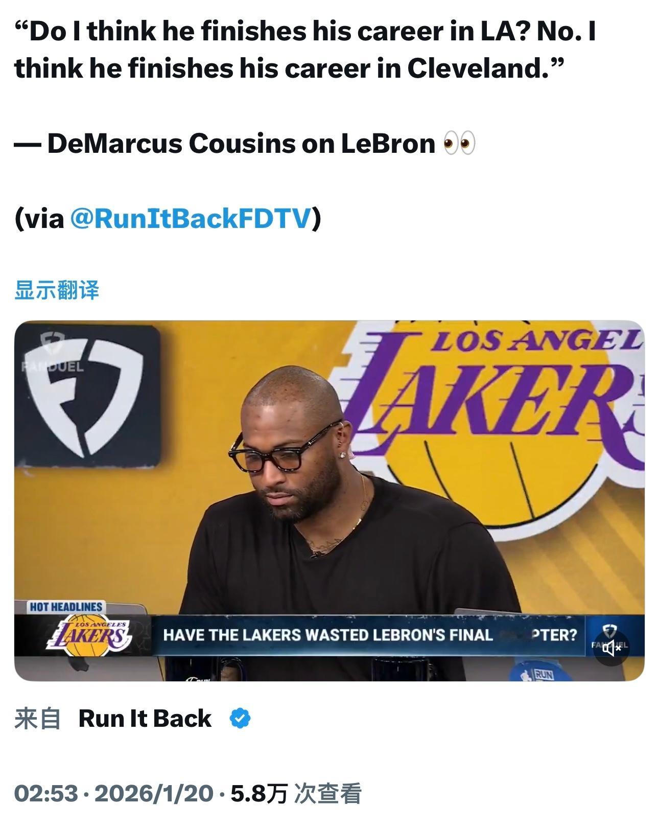 考辛斯认为:“我不觉得詹姆斯会在湖人结束职业生涯。我的直觉告诉我,他会在克利夫兰