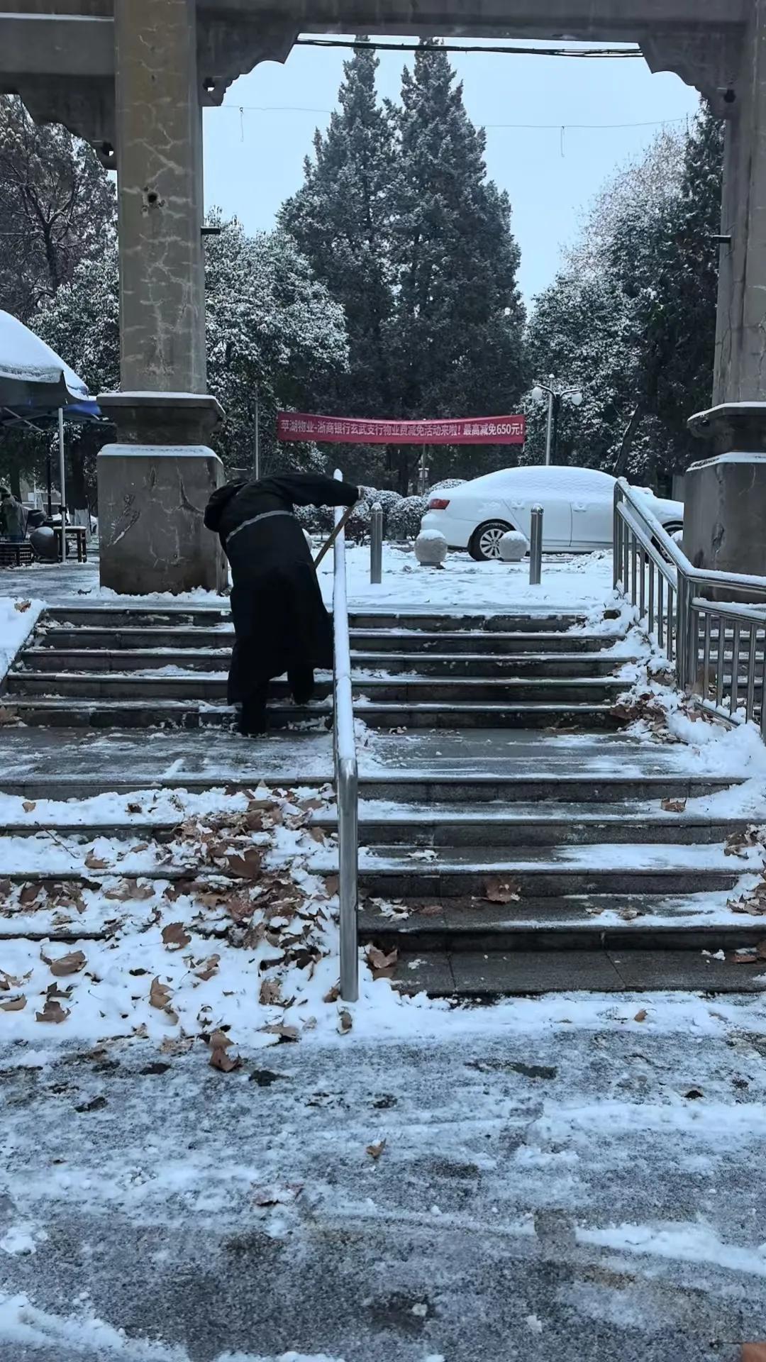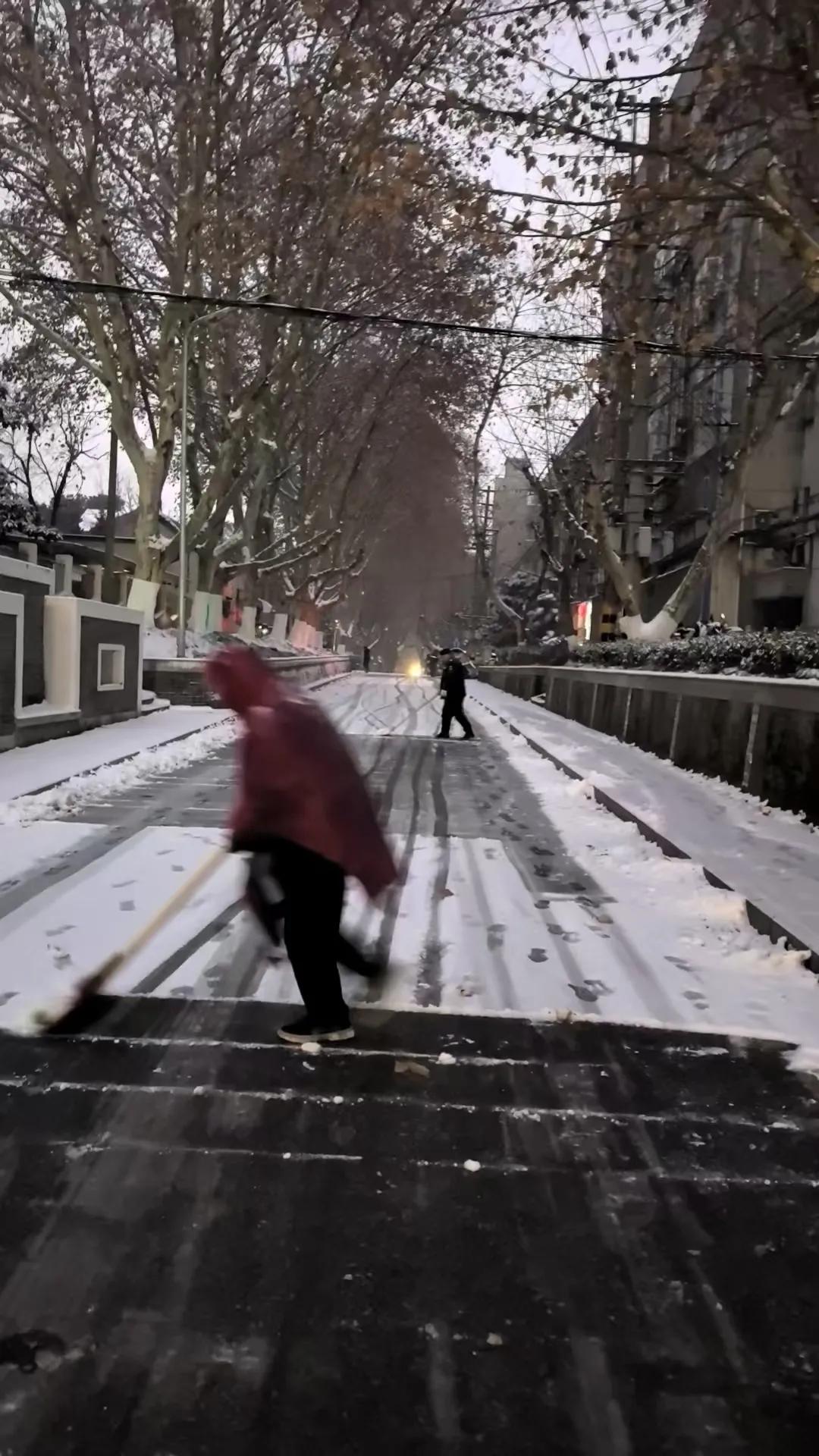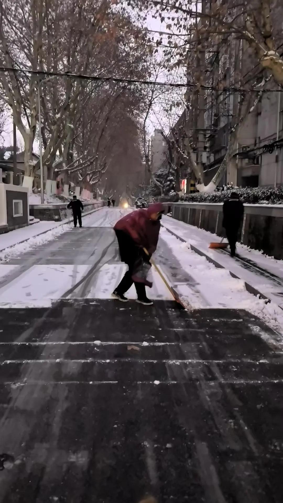致敬劳动者! 当城市中多数人还在暖融融的被窝里酣眠,我们的环卫清洁工早已汗如雨下,衣衫尽湿。 北风凛冽呼啸,大地银装素裹,那一幕幕劳动的画面,深深触动着我们每一个人! (蒋桂华摄影)