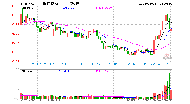 1月19日,医疗设备ETF(159873)跌0.16%,成交额2234.85万元。当日份额增加500.00万份,最新份额为3.74亿份,近20个交易日份额增加1.87亿份。最新资产净值计算值为2.34亿元。
