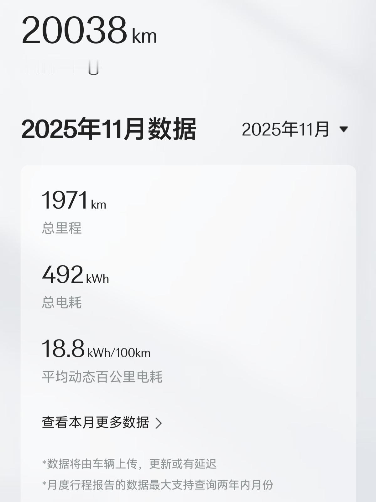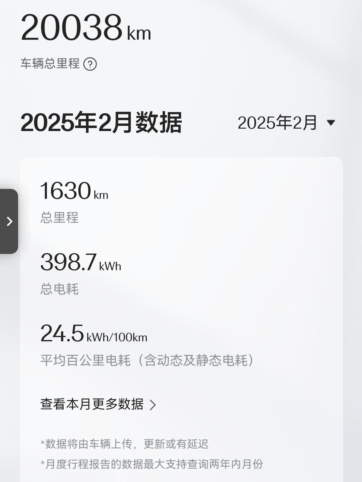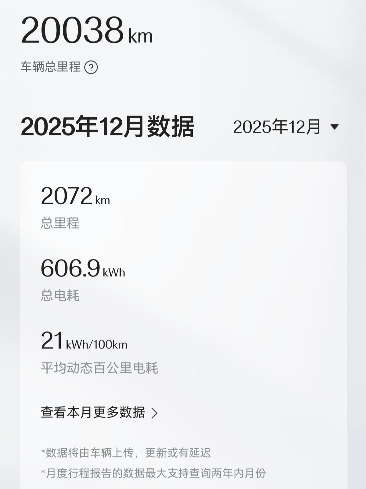 👉我的爱车是极氪7X2025款四驱长续航版。2025年1月19日提车。今天一周岁了。目前已经行驶了20042公里。在车友中属于中上游的水平。 👉结合一年来的使用情况,给大家分析一下爱车的能耗表现,给车友们做个参考。 ✅👉先给大家说一说我的用车习惯。 👉首先充电全部在商用快充桩完成。因为家和单位的周边有很多的商用快充站,所以就没有安装家用快充桩。同时也是为了节省一些成本吧,毕竟三四千元装的家充桩充电能充小两年,如果极氪官方赠送充电桩,我想我也会安装的。另外一个原因就是快充站在谷电时段的电价比家充桩高不了多少,一度也就高一两毛钱,一次也就多几块钱,所以也没有安装家用充电桩的动力。有的车友或者是车评说常年用快充桩充电对电池有损耗。这一点我也不是没有考虑过但是各个品牌都在安装自己的大功率充电站。如果快充会对电池有明显的影响,那这种行为岂不是自打自脸?所以我也就默认了快充不会伤害电池。 👉第二,我每次充电的电量上限在90~95%之间。因为官方给到的上限参考值是90%,而我呢本身跑的比较多,又懒得经常充,所以会顶着上限去充电,甚至超过5%,充到95%。但我极少把电脑充到100%,因为我知道100%的话对电池确实是有伤害的,特别是三原锂电池。一年来我只有不超过10次把电池充到过100%,都是充完之后接着跑高速的这种情况。 👉第三,我每次充电前的使用下限是30%左右。我是有一点续航焦虑的,所以低于30%我就觉得不够用了,然后要急着去充电。而我更多的时候是从40%充到90%。有的车友说充电频次多了,影响电池寿命,但是我也听不少车评人讲到,充电的一次循环指的是一次满格循环,不是你充电的具体次数,所以也就没当回事。 ✅说完以上三个用车习惯。现在开始揭秘我的电池健康度。 👉经过一年整2万公里的用车,我的极氪7X在4天前进行了首保。其中一个重要的检测项目就是电池的健康度。经过4s店工作人员的专业检测,电池的健康度为99.53%,也就意味着电池在第1年的损耗为0.47%。对于这样一个结果,我本人是非常满意的。因为即便以0.5%计算,10年或者20万公里下来的损耗也不过是5%。当然我也知道电池是有日历寿命的,随着年限的增加,损耗度很有可能会逐年上涨。但即便如此,10年后的健康度,如果是高于85%,我就心满意足了。 👉当然我的7X在使用时续航还是会打折的。车友们通过图片里的月度电耗就能看出来,12月份总能耗比11月份高出了100多度,行程只多了100公里。虽然身为宁德时代三元锂电池,但是气温对于电池能耗的影响还是显而易见。由此可以提出一个建议,北方城市买纯电车,还是要选大电池和三元锂电池。当然这种续航打折和电池损耗没有多大关系,主要是受季节气温影响。当然除了电池本身因为寒冷活力降低外,空调的能耗也不能忽略,因为对于电车来讲,冬季空调加热比夏季制冷更加的耗电。 ✅【结论】 👉以上就是给车友们分享的我的极氪7X一年来的使用和电池损耗详情。我对于7X这一年来在能耗方面的表现还是满意的,也打消了我听说的电车电池损耗大的传闻和顾虑。美中不足就是平均电耗依然偏高。当然我的7X是25款,26款经过全栈900伏高压平台升级后,相信能耗会有所降低。实际使用情况如何,期待车友们的分享。[来看我][送心][互粉]【来自懂车帝车友圈】