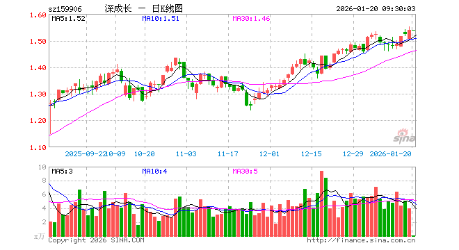 1月20日,深成长ETF大成(159906)开盘跌0.06%,报1.539元。深成长ETF大成(159906)重仓股方面,宁德时代开盘涨0.32%,新易盛跌0.41%,胜宏科技跌0.90%,汇川技术跌0.32%,华工科技涨0.10%,徐工机械跌0.09%,藏格矿业涨1.10%,亿纬锂能涨0.37%,盐湖股份涨1.68%,菲利华跌0.06%。
