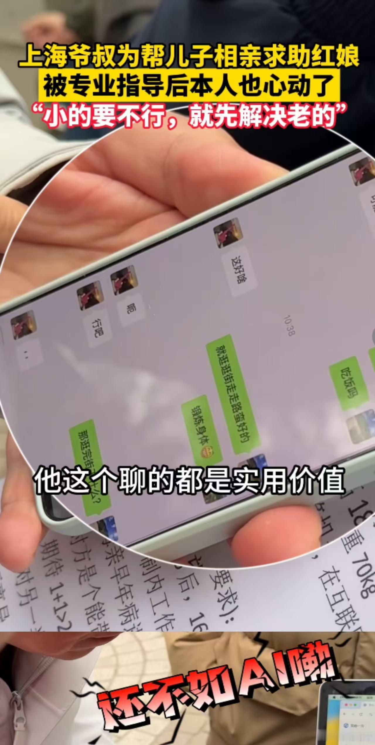 上海相亲角心眼最多的嘉宾出现了上海人民公园相亲角的AI红娘才是真正的嘴替!潜台词