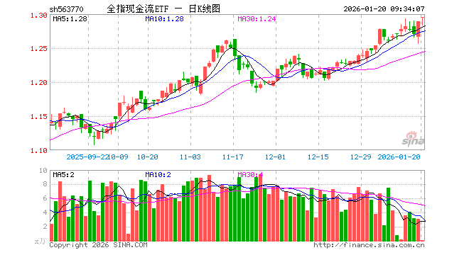 全指现金流ETF(563770)业绩比较基准为中证全指自由现金流指数收益率,管理人为招商基金管理有限公司,基金经理为许荣漫,成立(2025-05-08)以来回报为28.99%,近一个月回报为5.01%。