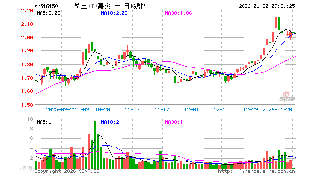 1月20日,稀土ETF嘉实(516150)开盘涨0.20%,报2.038元。稀土ETF嘉实(516150)重仓股方面,北方稀土开盘涨0.06%,卧龙电驱涨0.54%,领益智造跌0.32%,中国稀土涨0.00%,盛和资源涨0.25%,格林美涨0.22%,金风科技跌2.78%,包钢股份跌1.69%,厦门钨业涨0.64%,中国铝业涨0.53%。